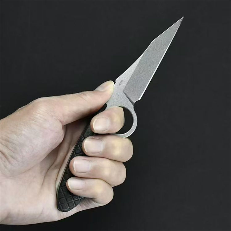 TOOR圣地亚哥指环刺直刀 全长:18.8cm 刃长:8.2cm 柄长:10cm 刃宽:2.5cm(最宽处) 刃厚:4mm 柄厚:1.5cm 柄宽:3.5cm 刃材:8Cr13Mov 柄材:G10 刀重:99G/137G(含鞘) 毛量:213G(含包装) 硬度:58±1HRC