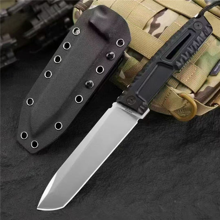 极端武力托斯卡纳直刀 全长:27.1cm 刃长:13.9cm 柄长:13.5cm 刃厚:6.0mm 刃宽:33mm 刃材:N690 柄材:G10 硬度:59HRC 净重:350克 刀鞘:K鞘 毛重:480克(含刀套) 包装:礼盒