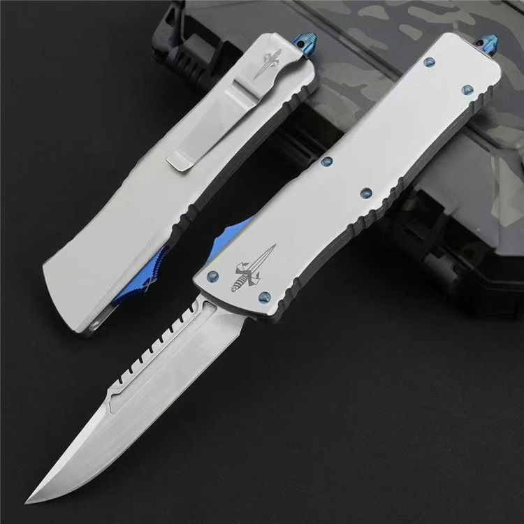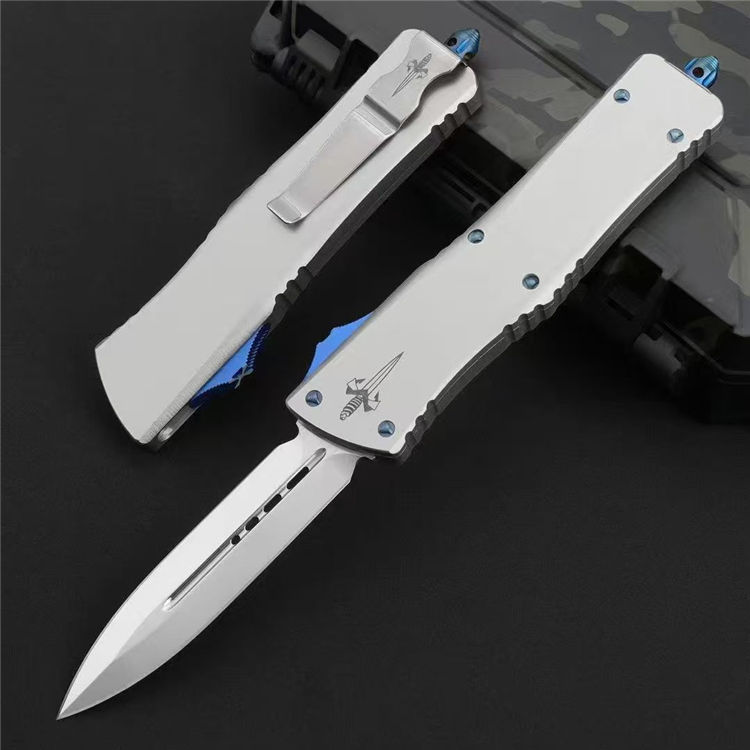 美国微技术大龙镜面版直出跳刀 全长:23.8cm 刃材:D2 刃长:9.5cm 柄长:14.4cm 刃宽:1.9cm 刃厚:0.3cm 柄材:T6航空铝 净刀重量:140克 附件:尼龙布袋,说明书,手动批头 彩盒 整刀用,CNC,电脑锣,线切割制作而成,手工,精密度非常高,很值得收藏的一把刀