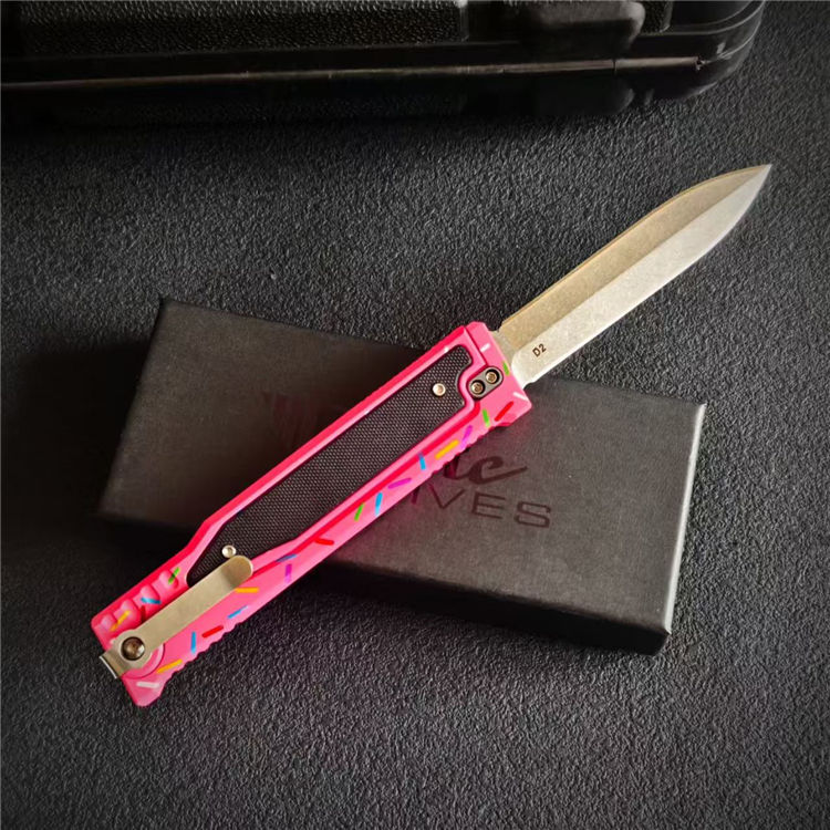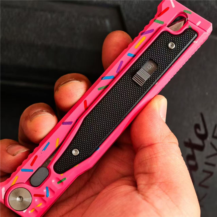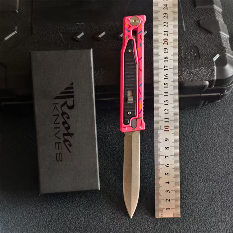 瑞吉甜甜圈萝卜刀 全长:23.2cm 刃长:9.8cm 柄长:13cm 刃厚:3mm 刃材:D2 柄材:CNC铝柄 硬度:59-60HC 重量:100g/151g(含包装)