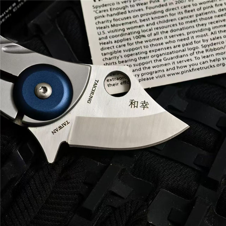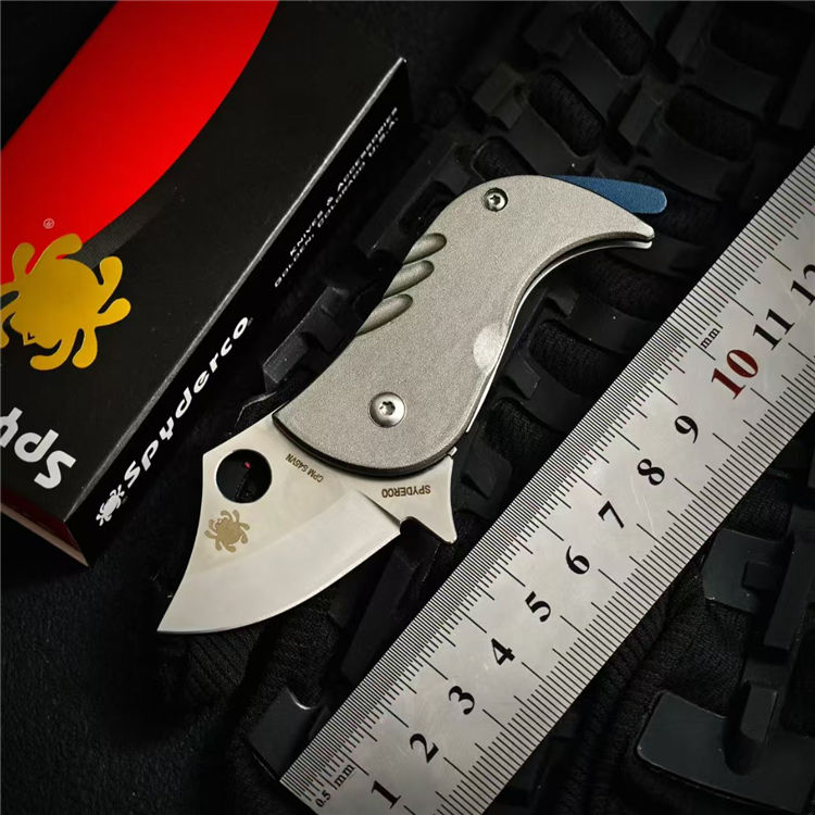 蜘蛛C256小狗折刀 全长:11.5cm 刃长:4cm 柄长:7.8cm 刃宽:3cm 刃厚:3mm 刃材:CPM S45VN 净重:56g 毛量:75.5g 硬度:59-60HRC 柄材:铝合金