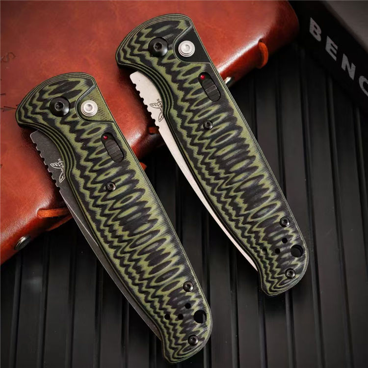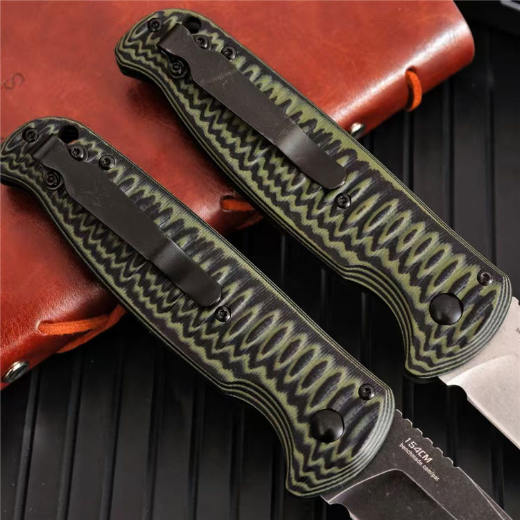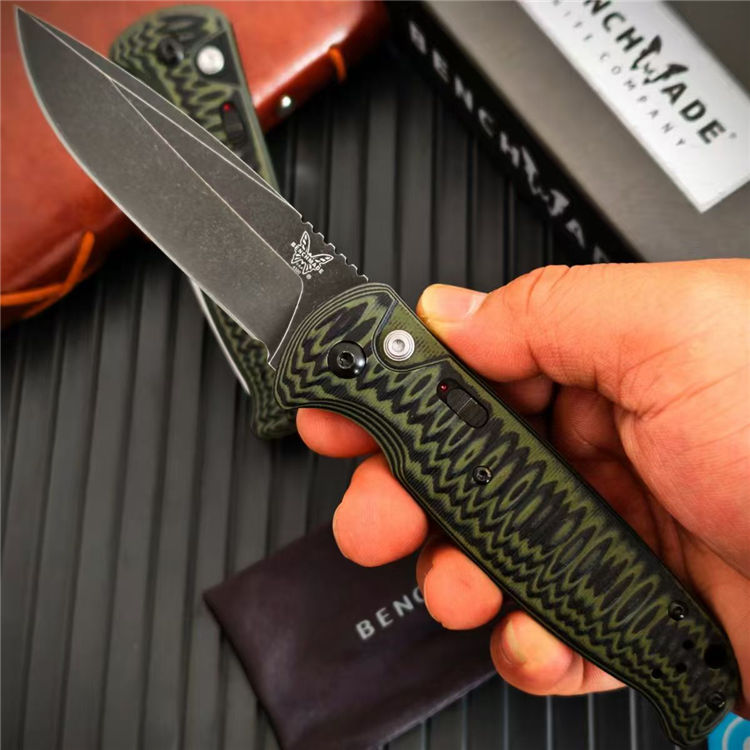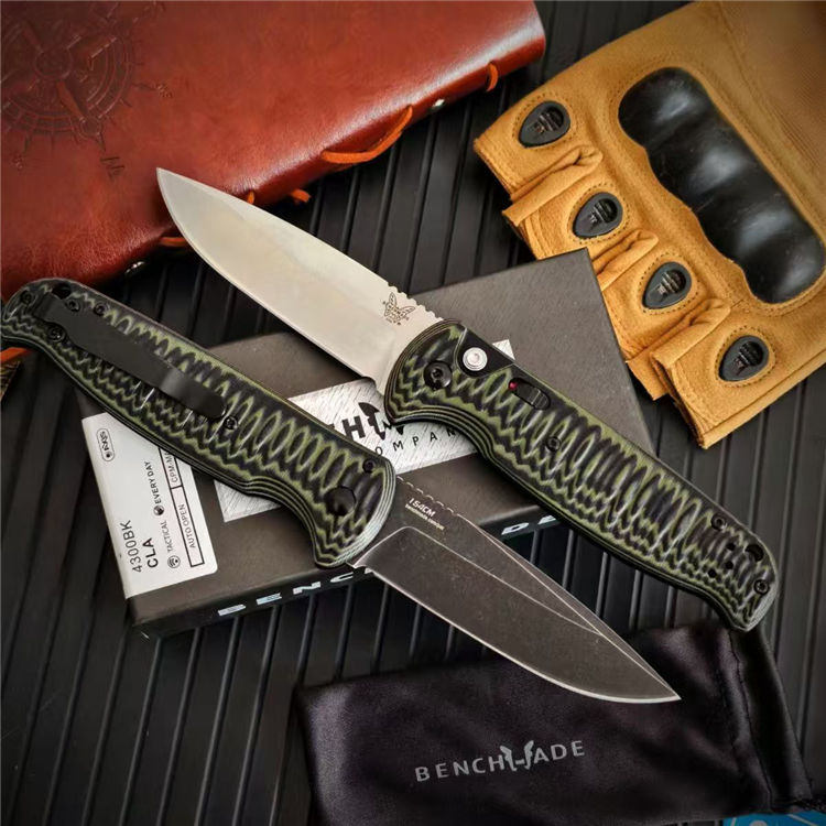 蝴蝶4300双色侧开跳刀 全长:20.9cm 刃长:8.9cm 柄长:11.8cm 刃宽:2.5cm(最宽处) 刃厚:3.25mm 柄长:双色G10 刃材:154cm 重量:113g/177g(含包装) 硬度:59-60HRC 表面:黑石洗/石洗白刃