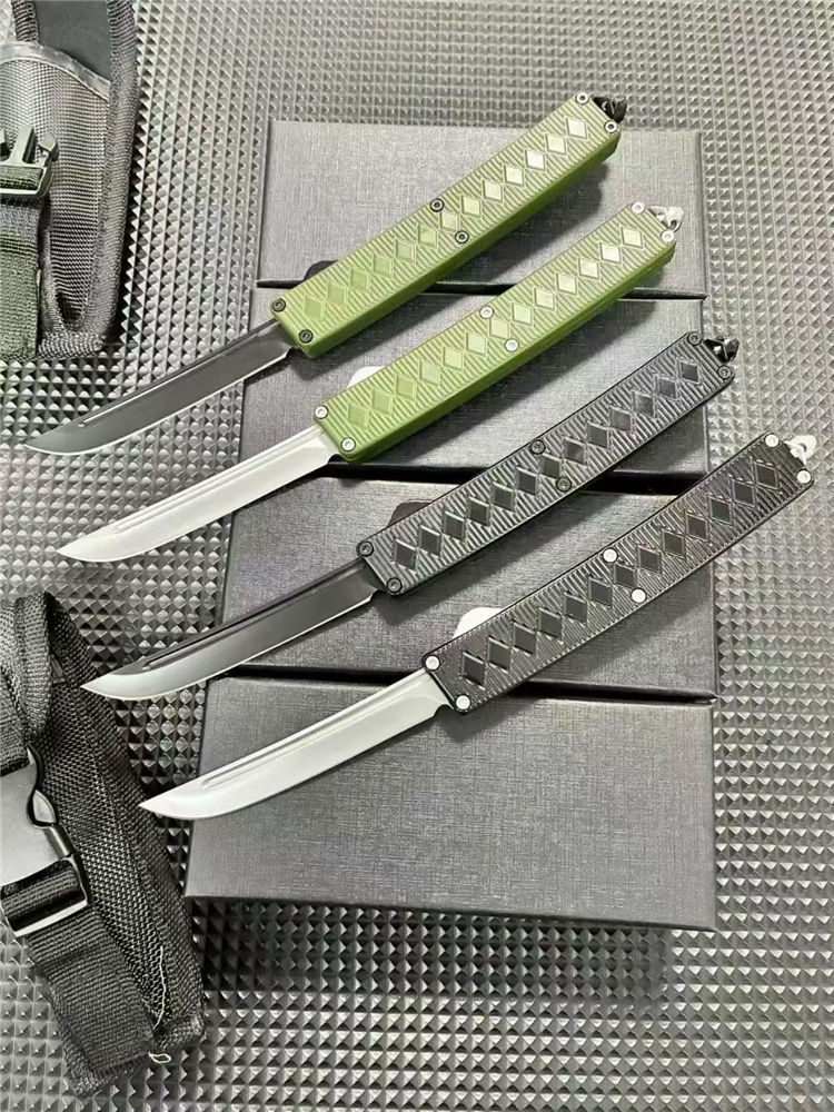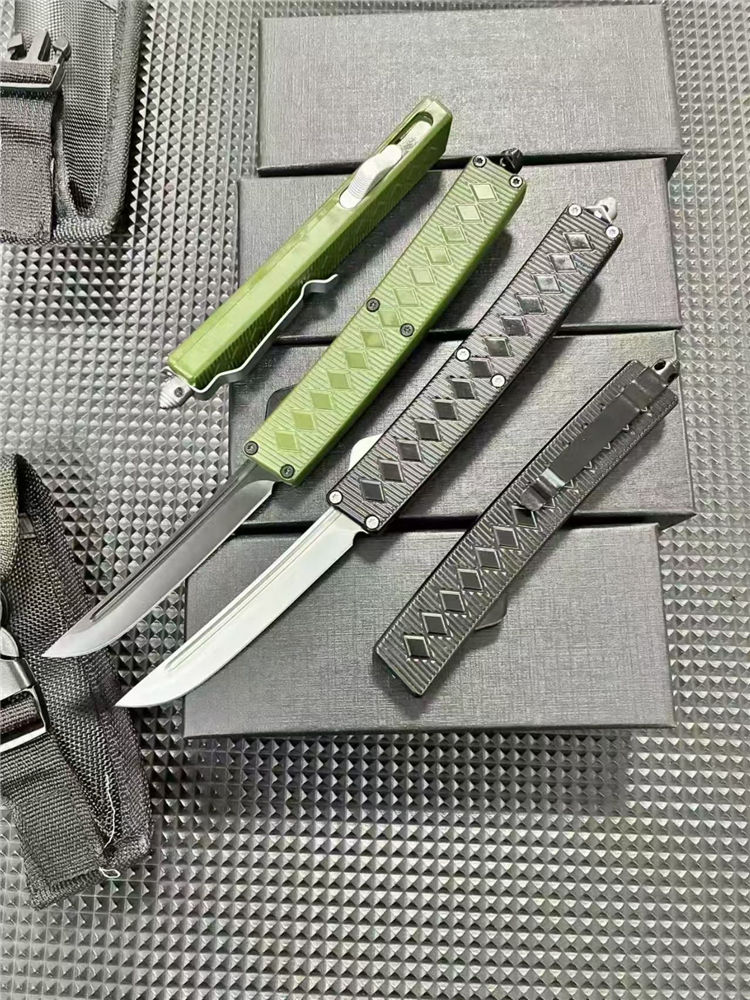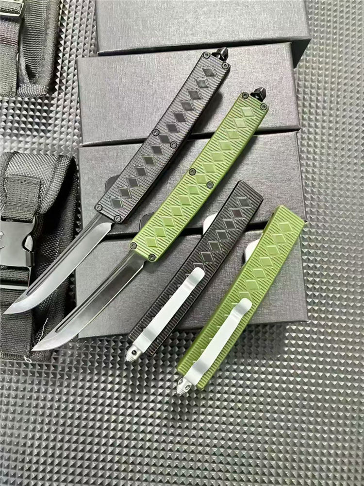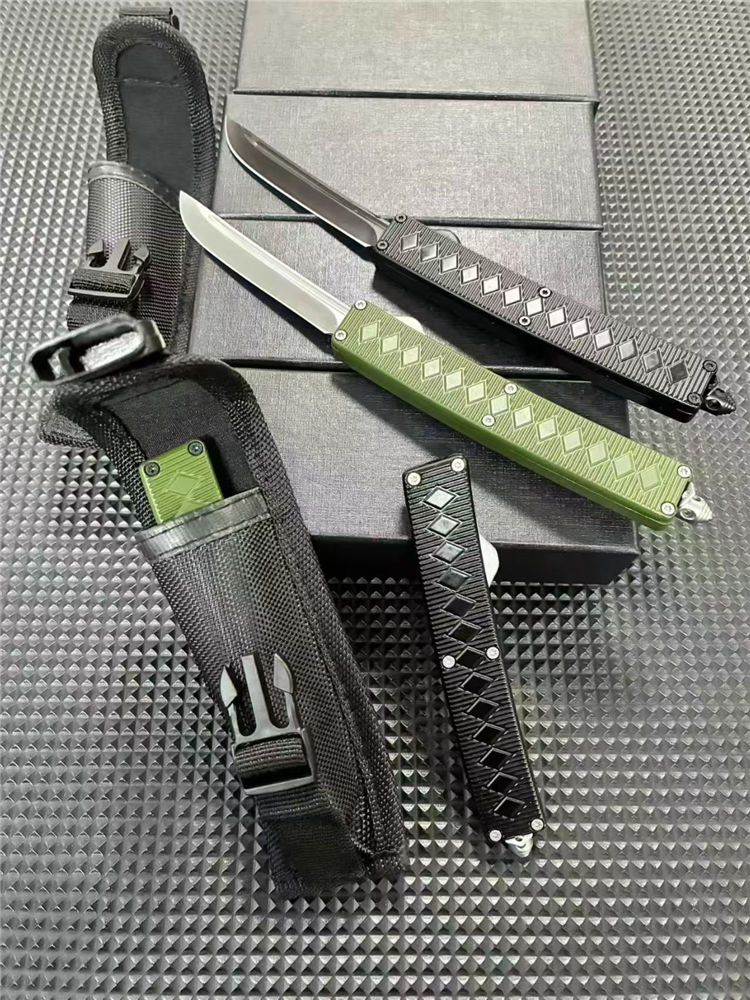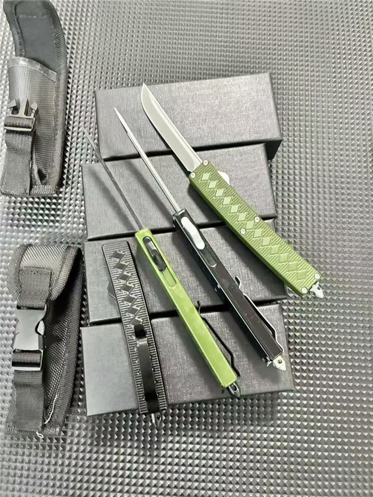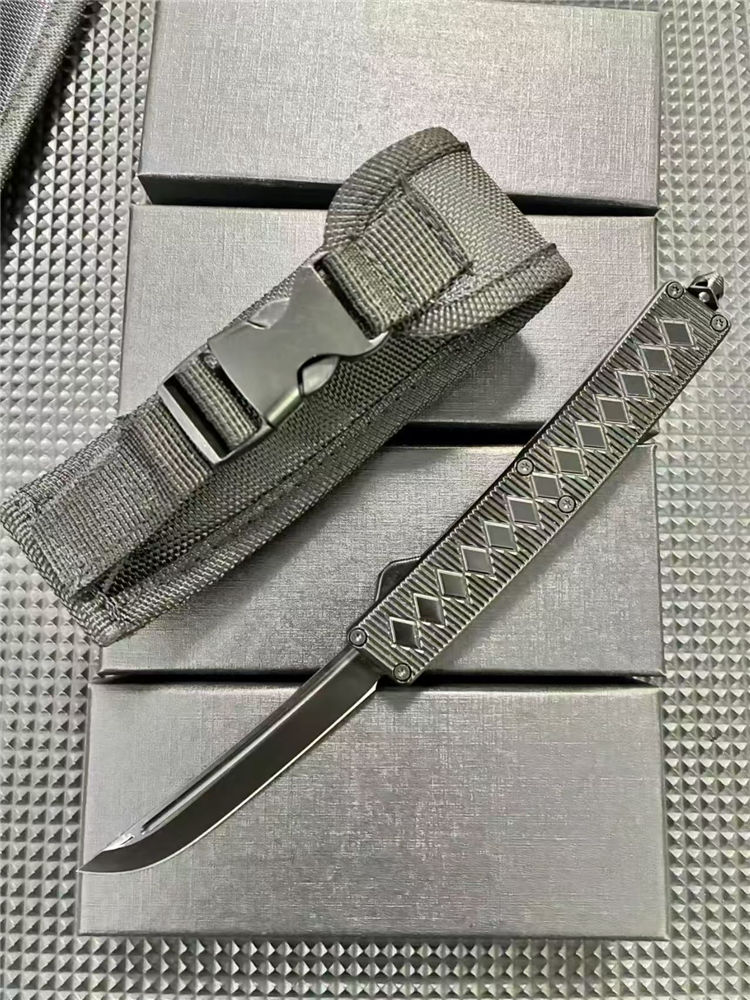 OTF武士直出跳刀 全长:21cm(含破窗锥) 刃宽:1.3cm 刃长:8cm 柄长:12cm 刃厚:3mm 刃材:5CR13 柄材:锌合金 重量:124G 硬度:58-60HRC 配件:牛津袋