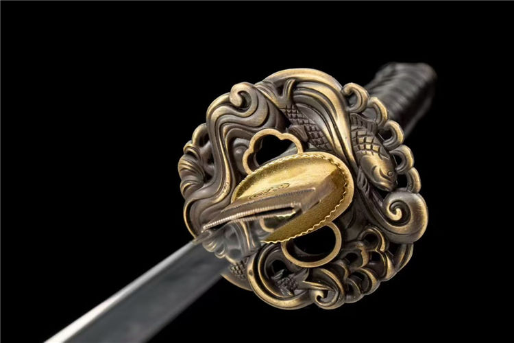 20寸T10烧刃双鱼星神武士刀 全长:78cm 刃长:52cm 柄长:23cm 刃宽:3.2cm 刀鞘:实木漆鞘,配粗下绪 手工18道研磨,镜面研磨工艺,硬度60,刚柔相济!超高性价比赠高端锦盒