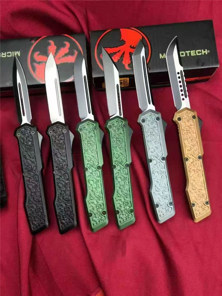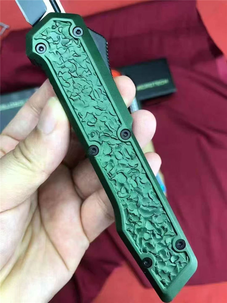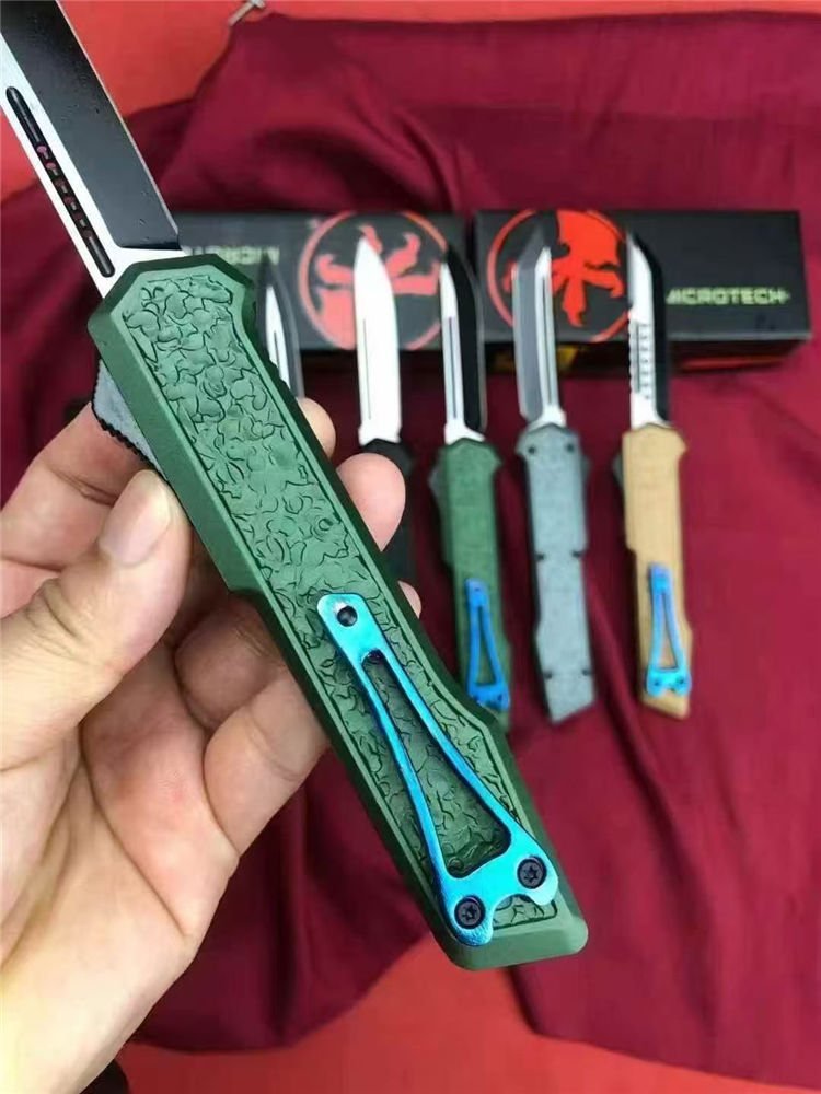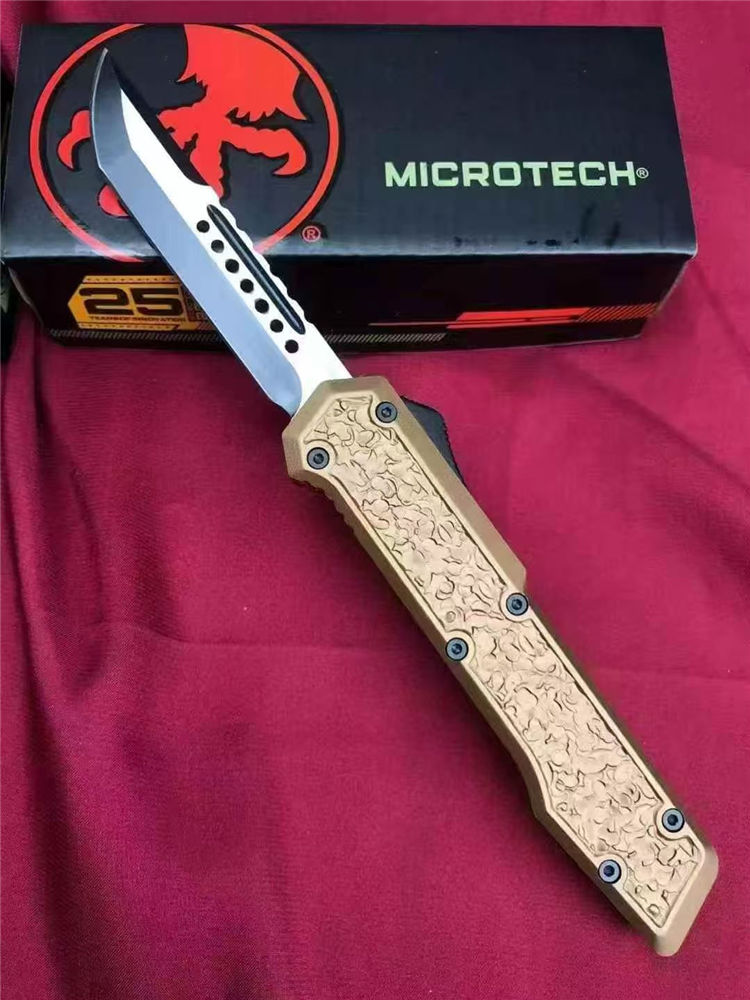 微技术怒鲨3直出跳刀 总长:21.6cm 刃长:9cm 柄长:12.6cm 刃材:D2 柄材:铝合金(CNC) 包装:彩盒+尼龙套 重量:101g/145g
