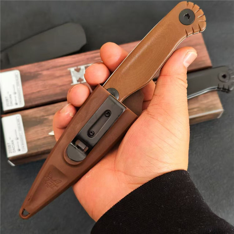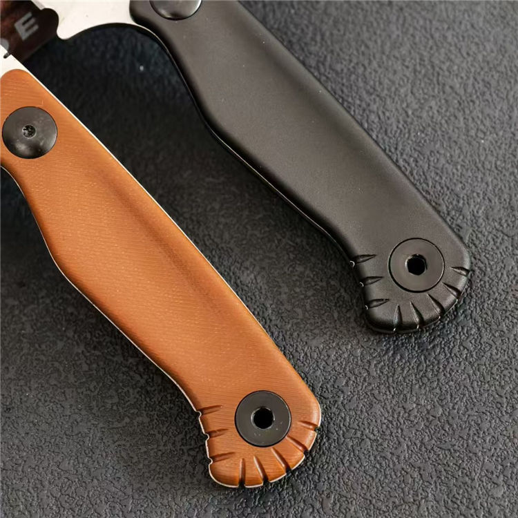 蝴蝶203BT直刀 总长:19.1cm 柄长:10.4cm 刃长:8.1cm 刃宽:3.1cm 刃厚:3.3mm 材质:5CR13 柄材:G10 柄宽:2.5cm 柄厚:1cm 重量:117g,含包装刀鞘总重量:196g