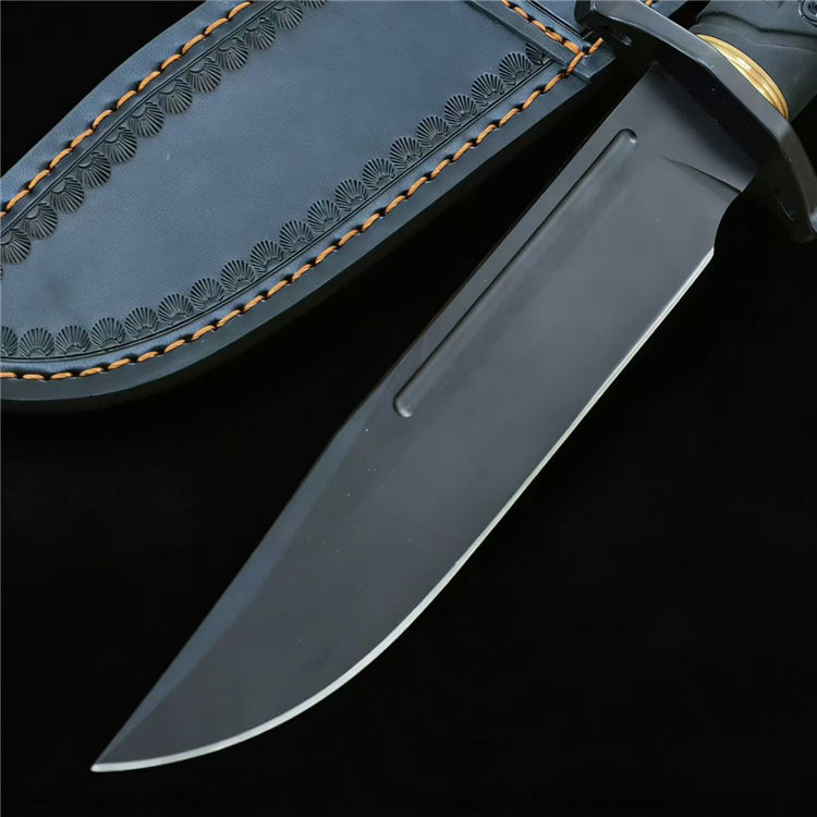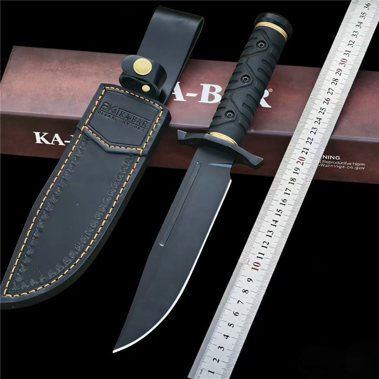 卡巴森林猎人典藏版直刀 全长:31cm 刃长:16.2cm 柄长:12cm 刃厚:6mm 刃宽:3.7cm 钢材:1095 柄材:橡塑柄 重量:421g(含皮套506g)