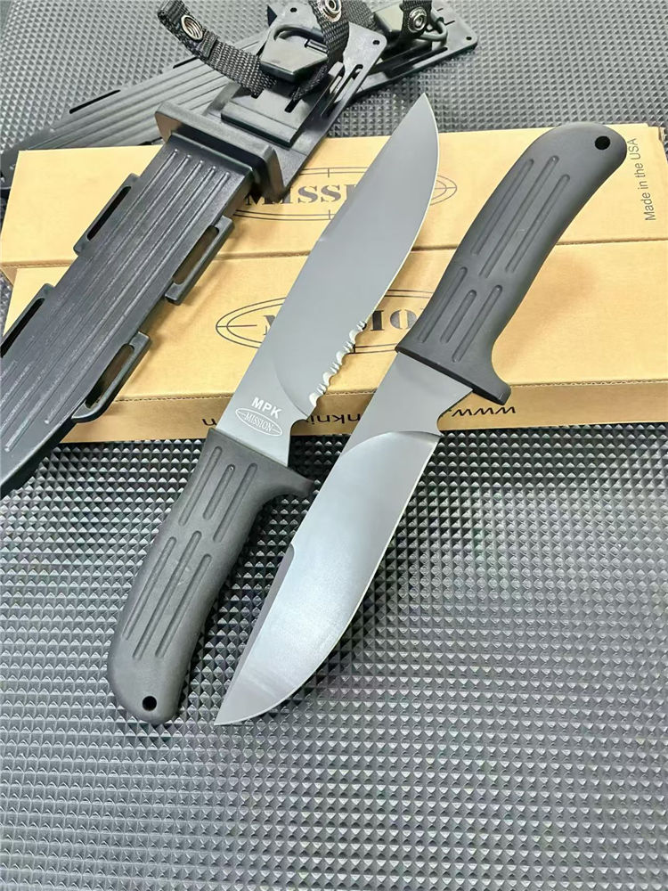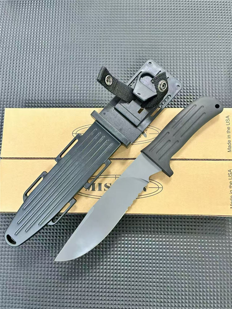美国使命MPK-A2直刀 全长:300mm 刃长:155mm 柄长:120mm 刃材:A2 硬度:60HRC 刃厚:6.3mm 柄材:kevlar / hytrel混合物 (抗热,不导电) 刃鞘:订制鞘 单刀重量:330g