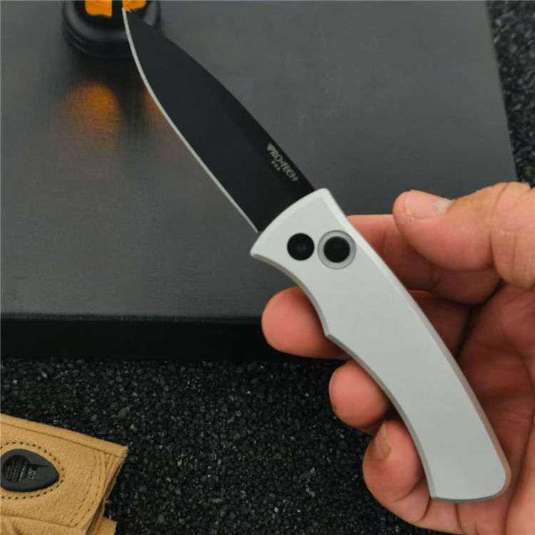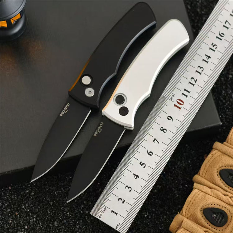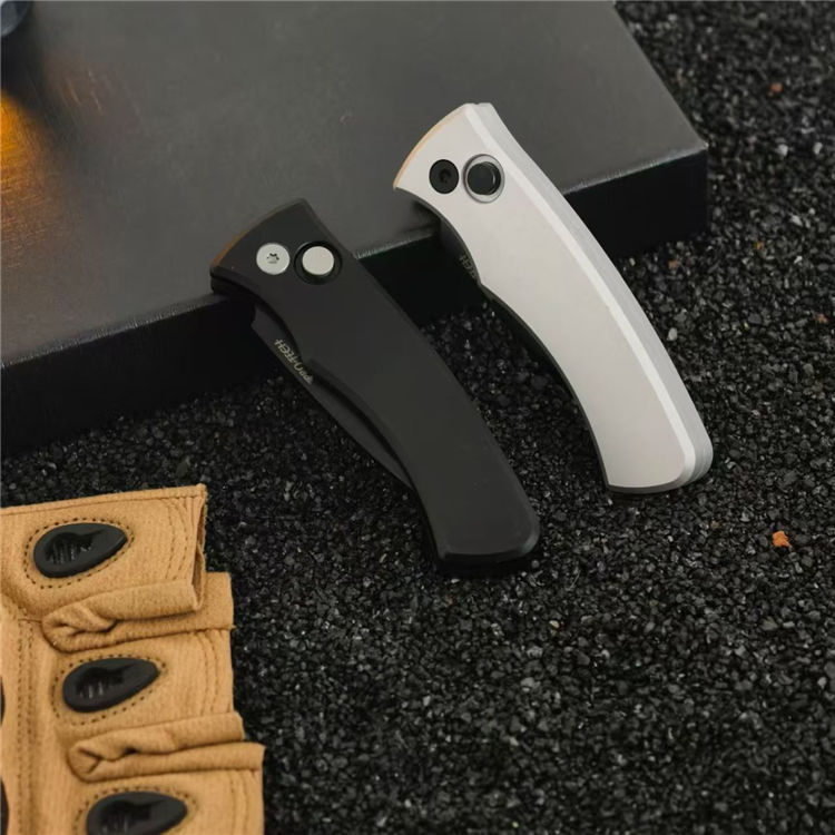 超技术201侧开跳刀 全长:157mm 刃长:67mm 柄长:90mm 刃厚:2.9mm 刃材:9cr13 柄材:航空铝 硬度:58HRC 净重:60g 工艺:镀钛+数控CNC+数控研磨+精密机床