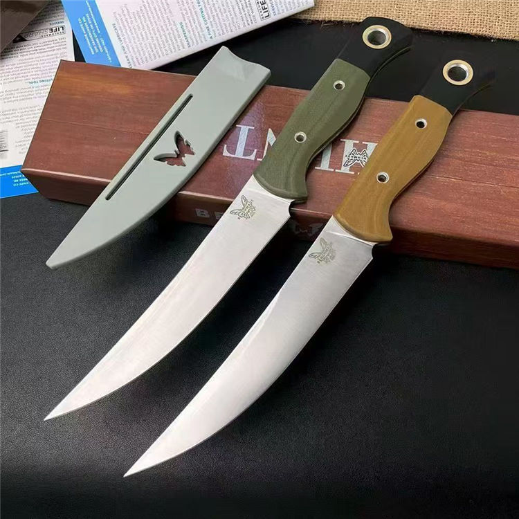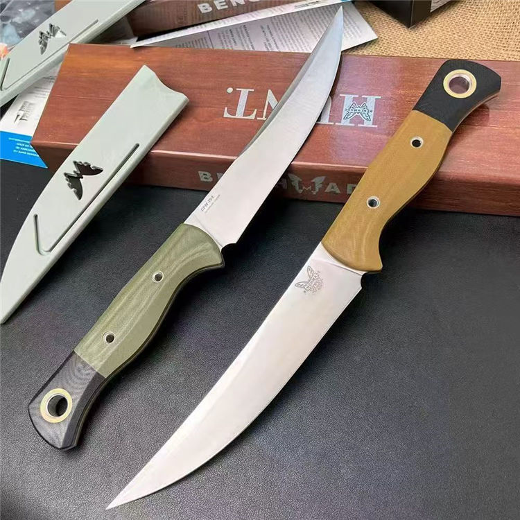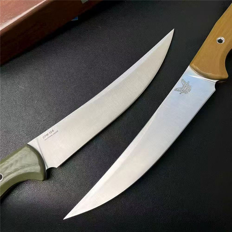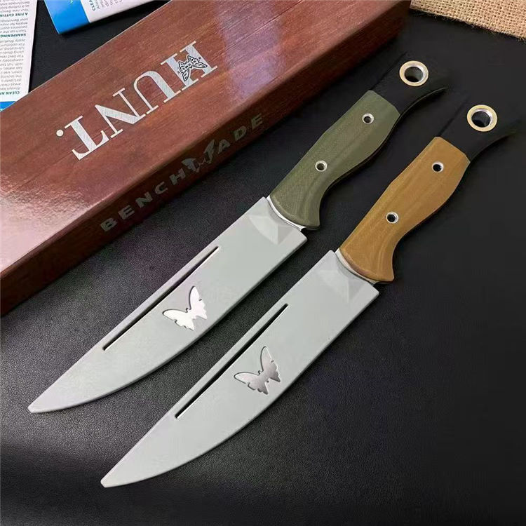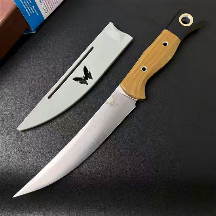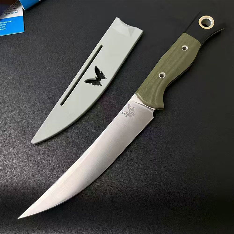 蝴蝶4050直刀 全长:282mm 刃长:154mm 刃宽:29mm 柄长:125mm 刃厚:2.5mm 刃面:锻光 刃材:CPM-154钢 净重:142g 重量:272g(含刀鞘包装盒) 刀鞘:灰色 PIM 硬度:60HRC真空淬油热处理 柄材:绿色或沙漠色G10 包装:原装彩盒 备注:设计用于家庭厨房和徒步旅行,户外露营