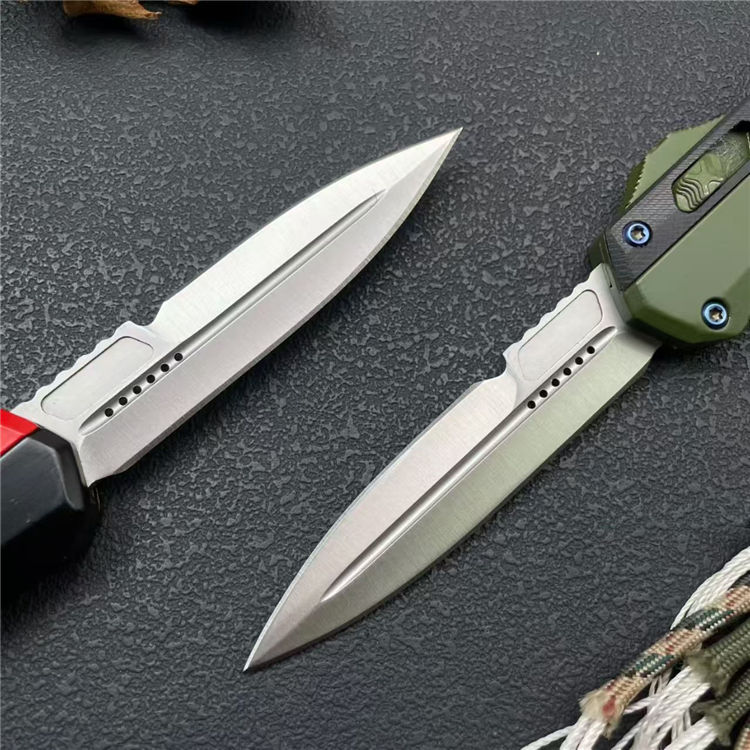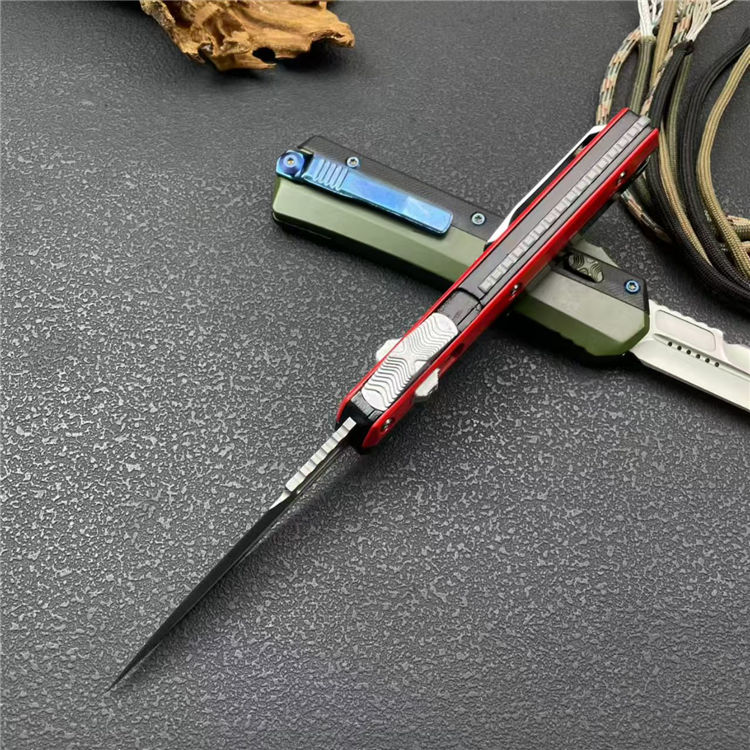 外贸版蛇神直出跳刀 全长:23cm 刃长:8.8cm 刃厚:3mm 刃材:8CR14MOV 硬度:58HRC 柄材:锌合金+尾部破窗锥 锁闭:弹簧直出 净量:234G 毛重:317G