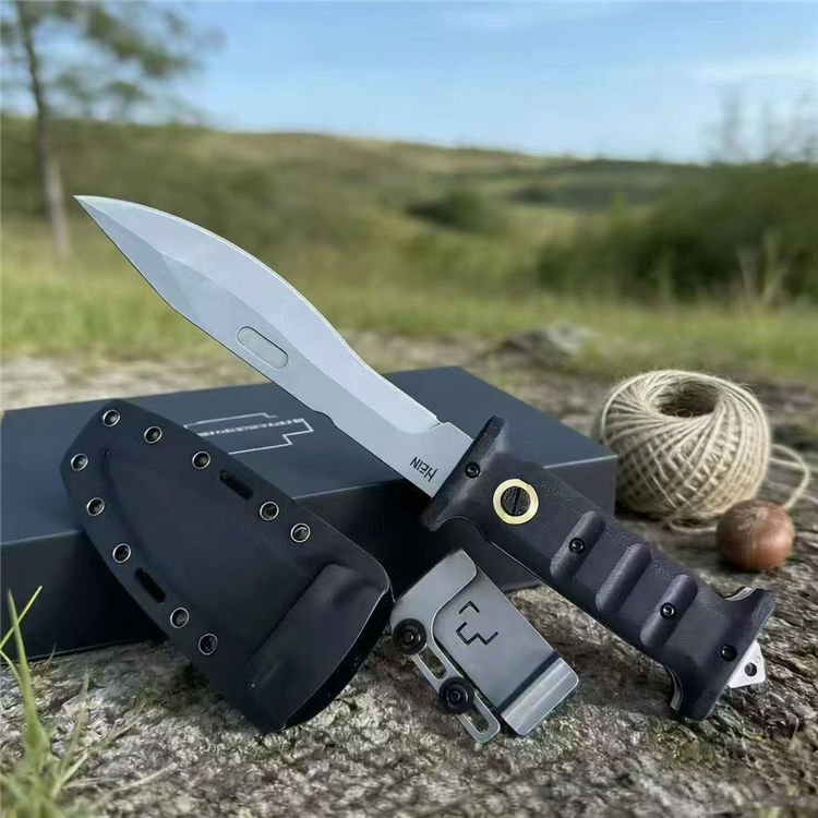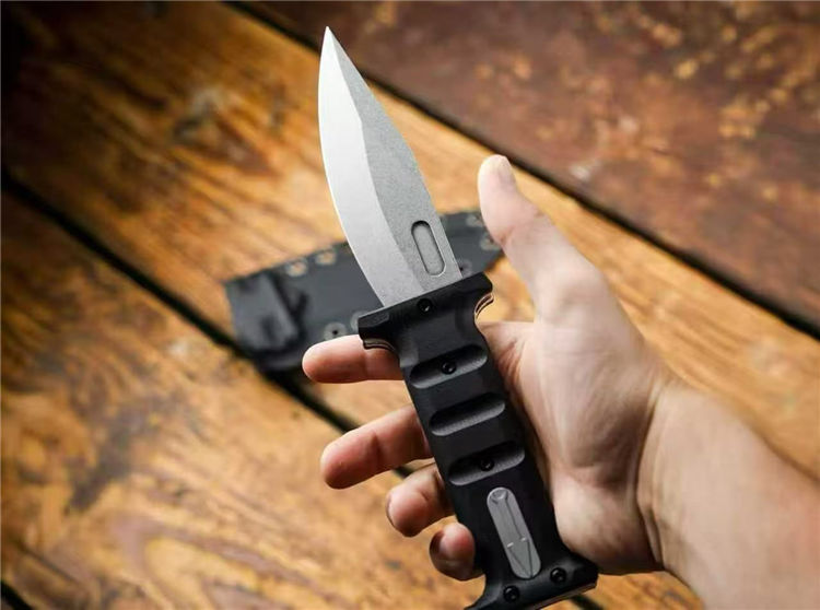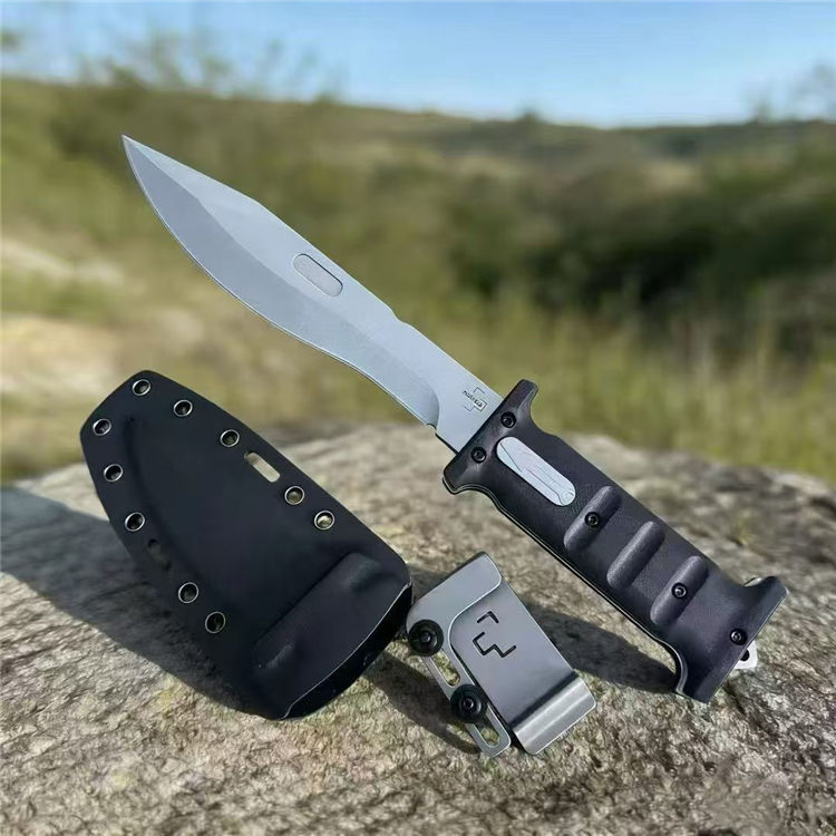 刀柄末端有打击钉,应急破窗或敲击都OK!Kydex刀鞘轻便耐用,收纳携带方便,携带或野外生存都很实用