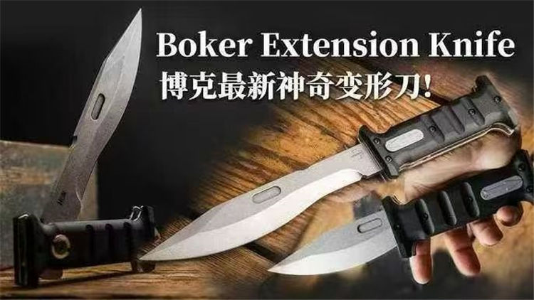 德国boker-Extension Knife,折叠时,刀柄恰好覆盖刀刃的一半,而另一半则伸出刀柄。D2 刀片通过一个大型十字螺栓在打开和关闭时固定,这个十字螺栓也可以在没有工具的情况下拧入手柄中,使刀在完全打开和缩短时都更加耐用,由两块厚钢板和铣削G10制成的手柄,为了多功能使用,刀柄末端有一个坚固的打击钉,这把刀配有一个定制的Kydex鞘