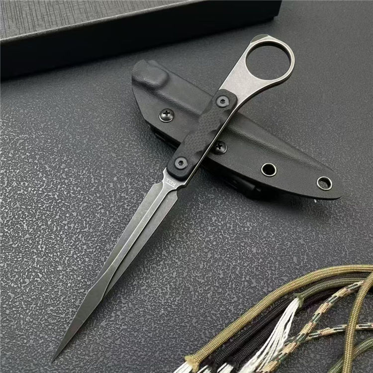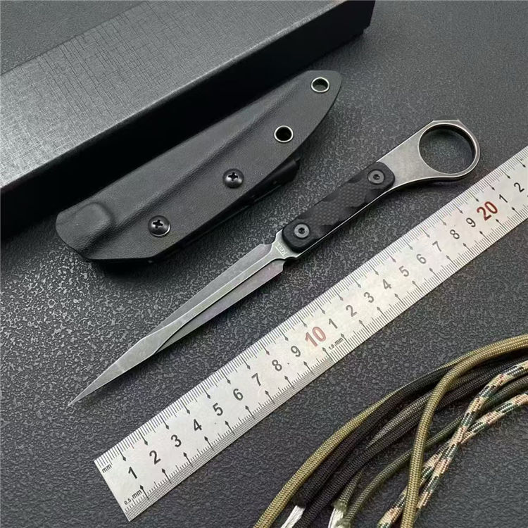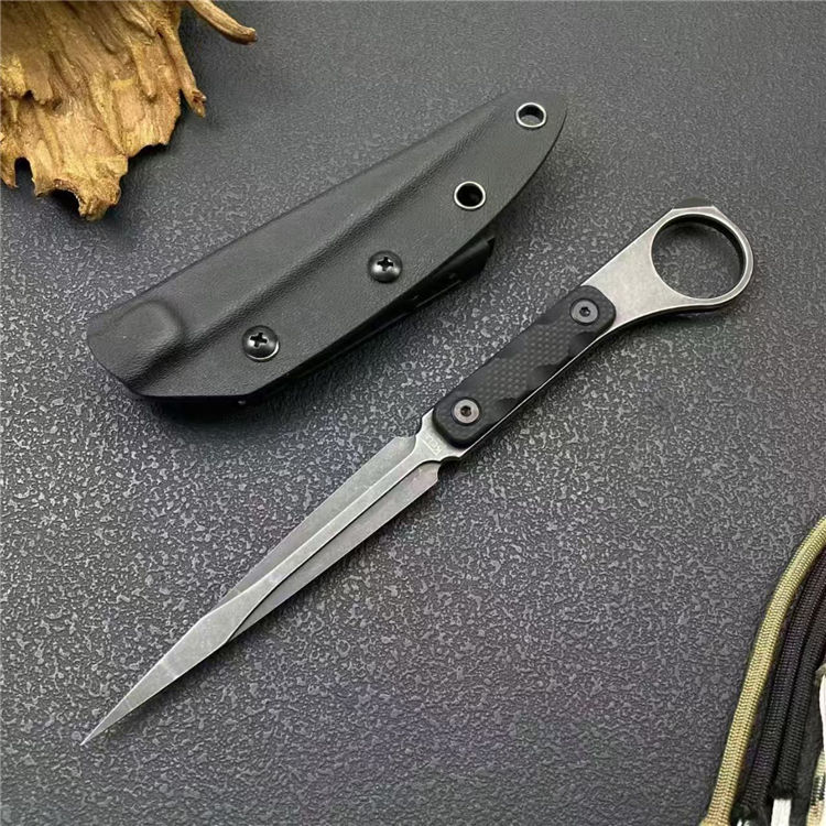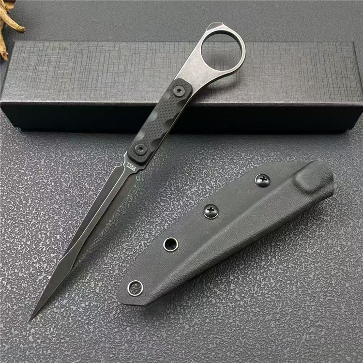 TK冰锥手刺 全长:21.5cm 刃宽:1.6cm 刃长:10.5cm 柄长:10.5cm 刃厚:4.6mm 刃材:M390 柄材:一体钢+G10 刀重:91G 毛量:149G 硬度:58-60HRC