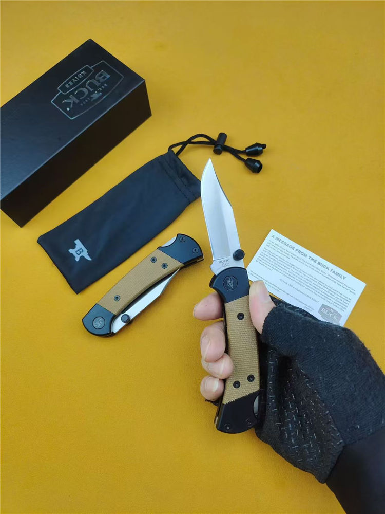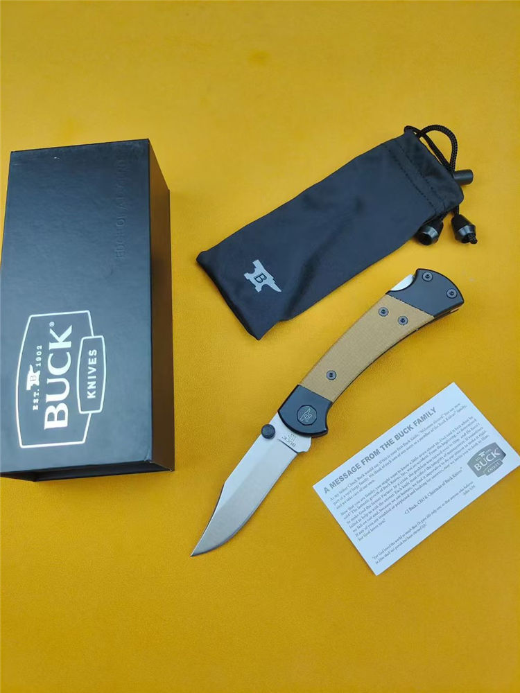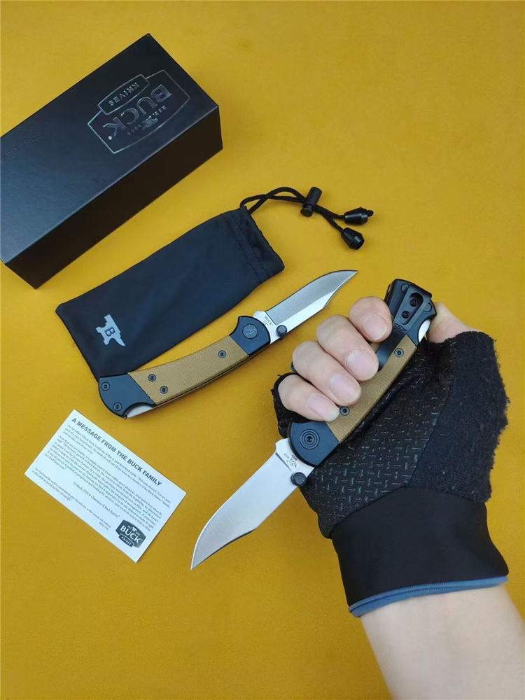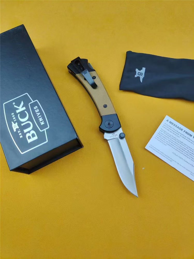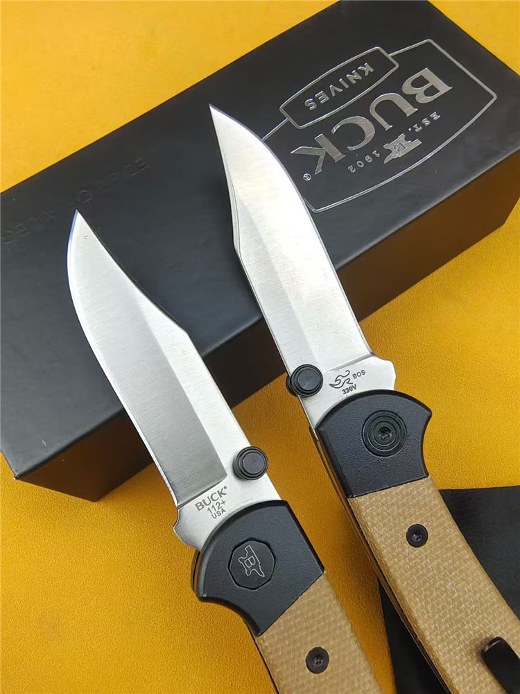 BUCK巴克112折刀 全长:182mm 刃长:73mm 刃厚:3mm 刃宽:19.5mm 硬度:58-60HRC 闭合:109mm 刃材:3V钢 柄材:钢+米拉塔纤维板 重量:110g 表面:数控机床水磨处理+砂光 柄材制作工艺:数控精密CNC电脑逻加工+砂光+二次抛光