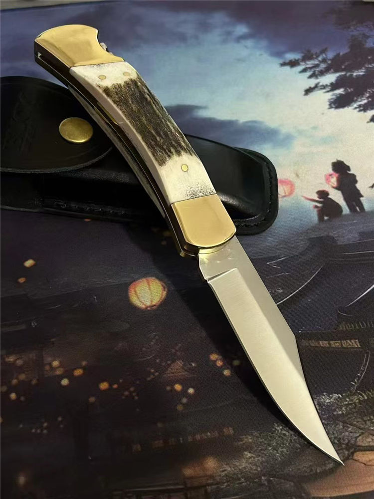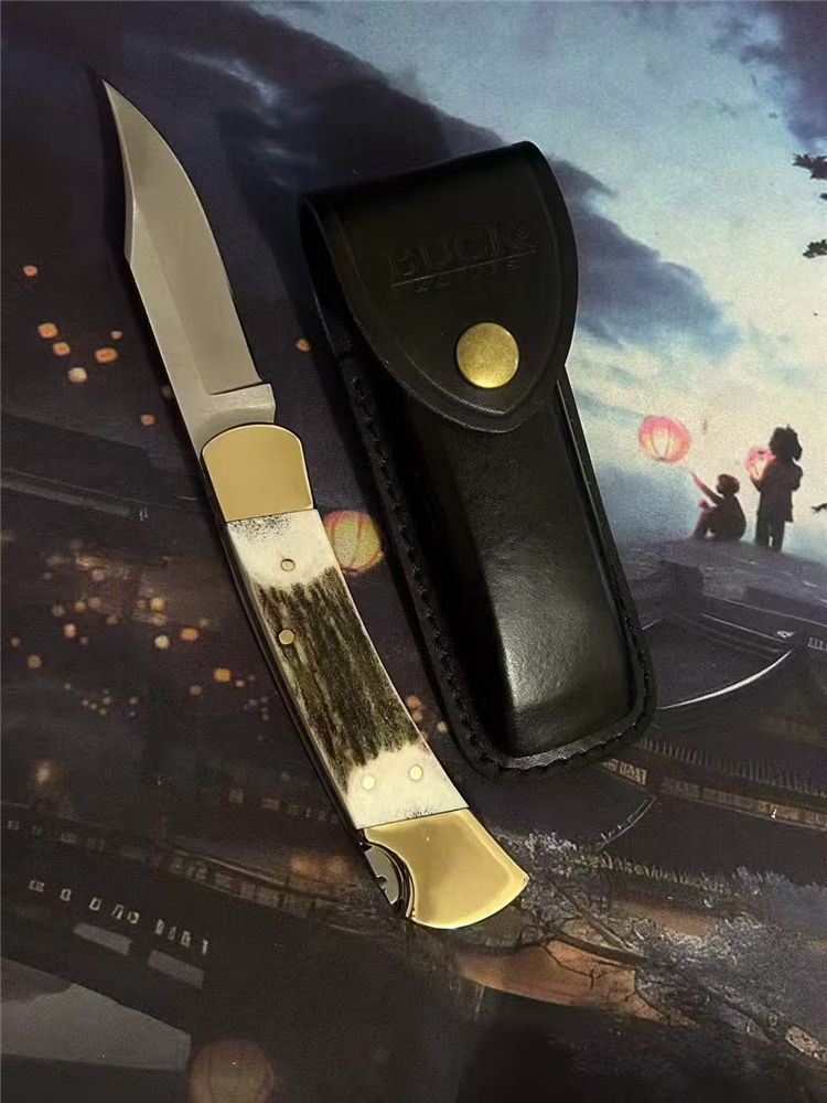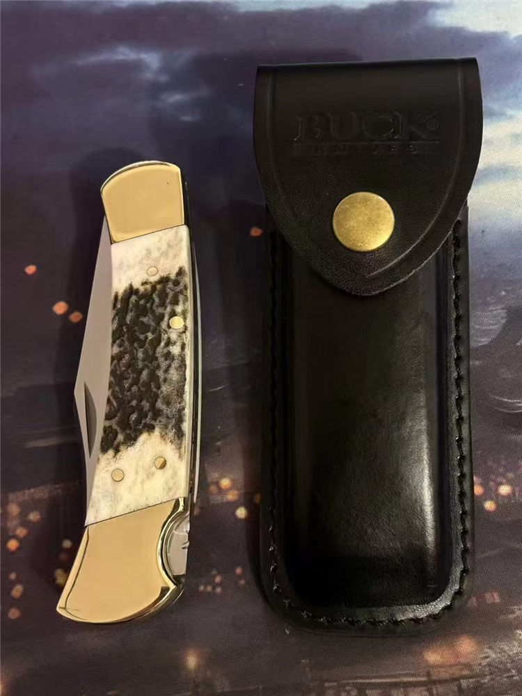 巴克110鹿角柄背锁折刀