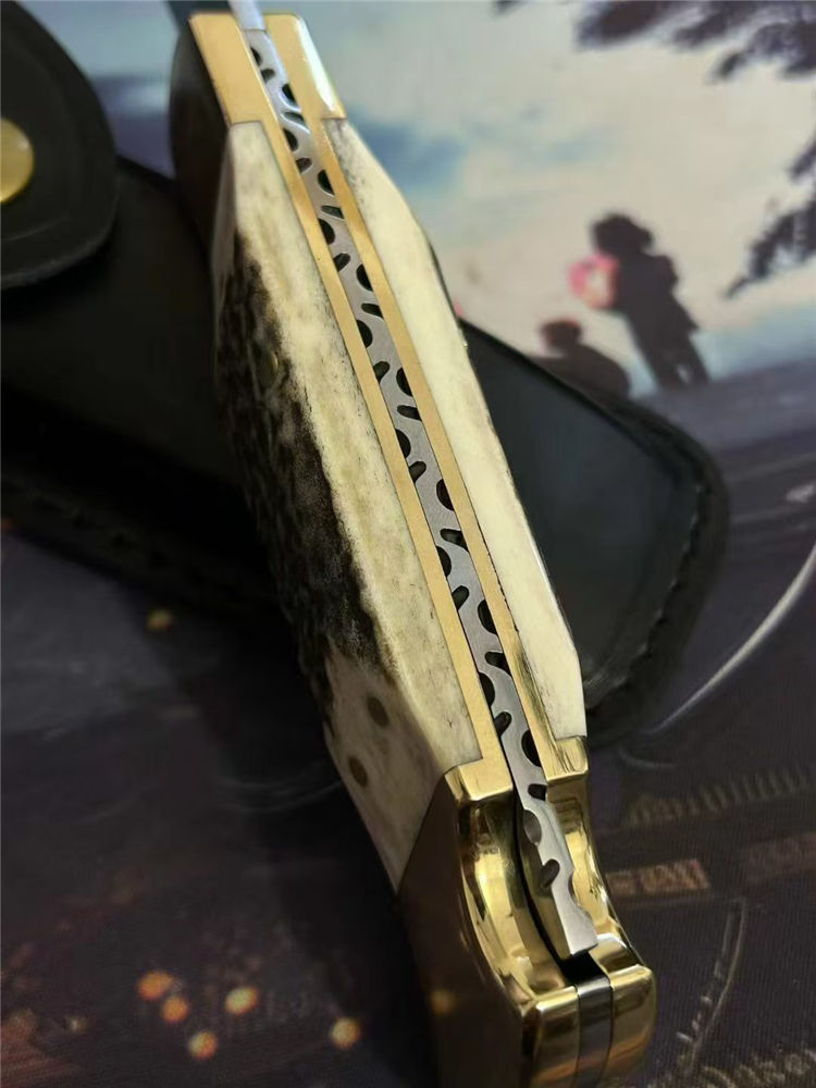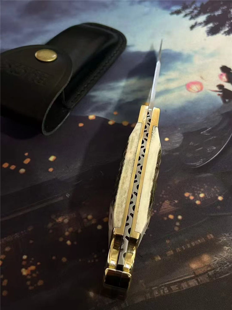 手柄:一体CNC黄铜柄+鹿角贴片