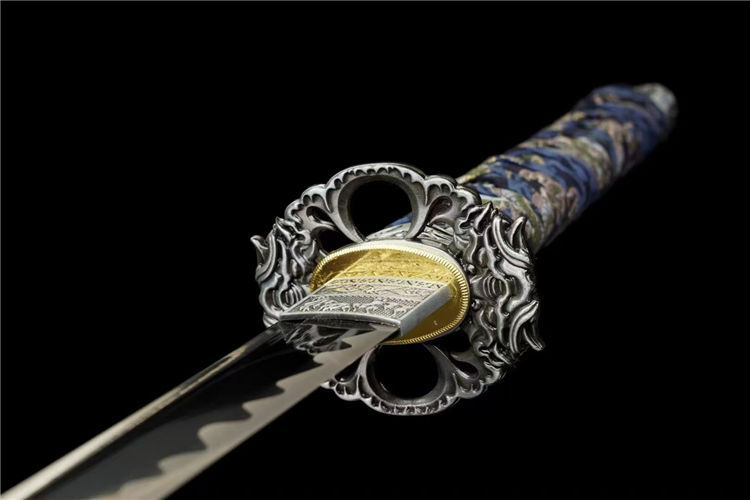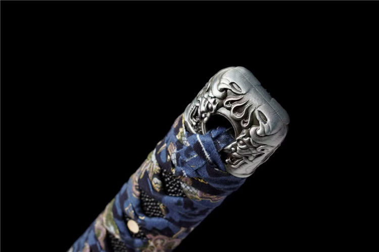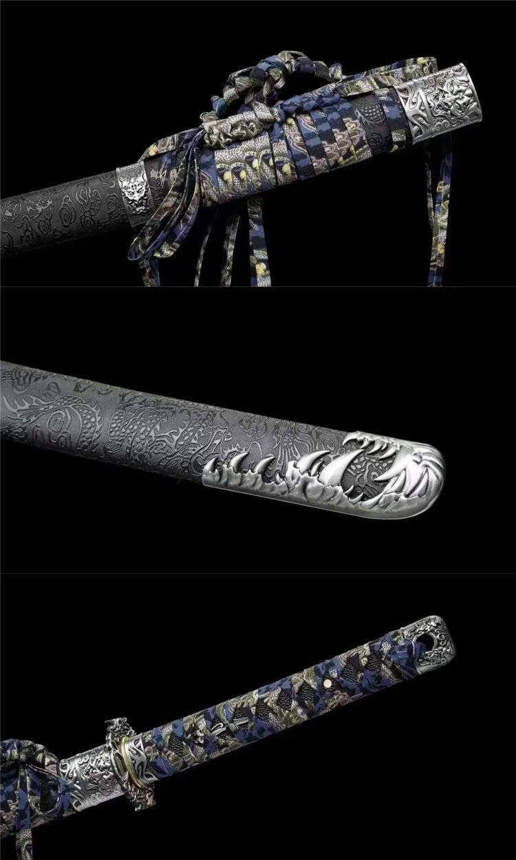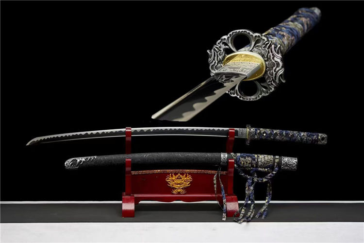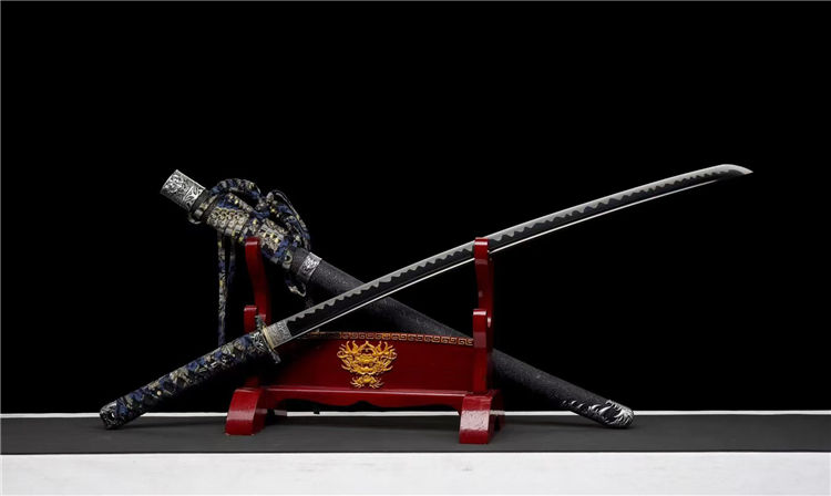 鬼魅武士刀 全长:104cm 刃长:73cm 柄长:27cm 刃宽:3.2cm 刃厚:0.7cm 材质:中碳钢 鞘材实木PU皮革包裹,锌合金太刀套装,适合收藏