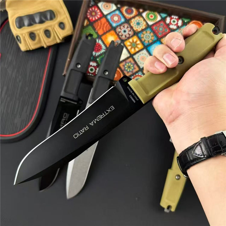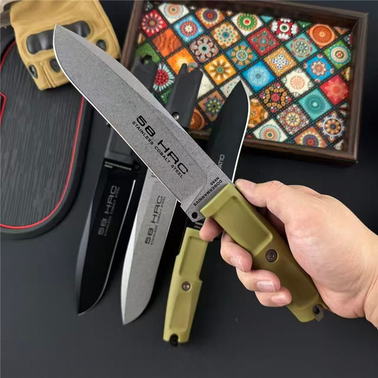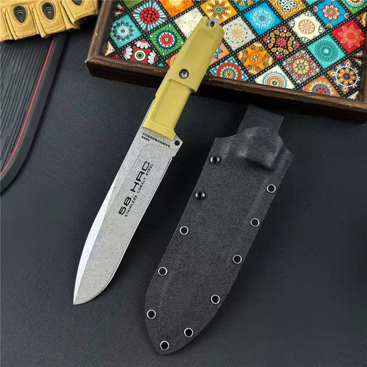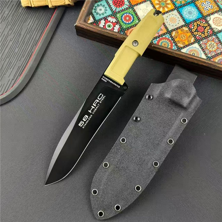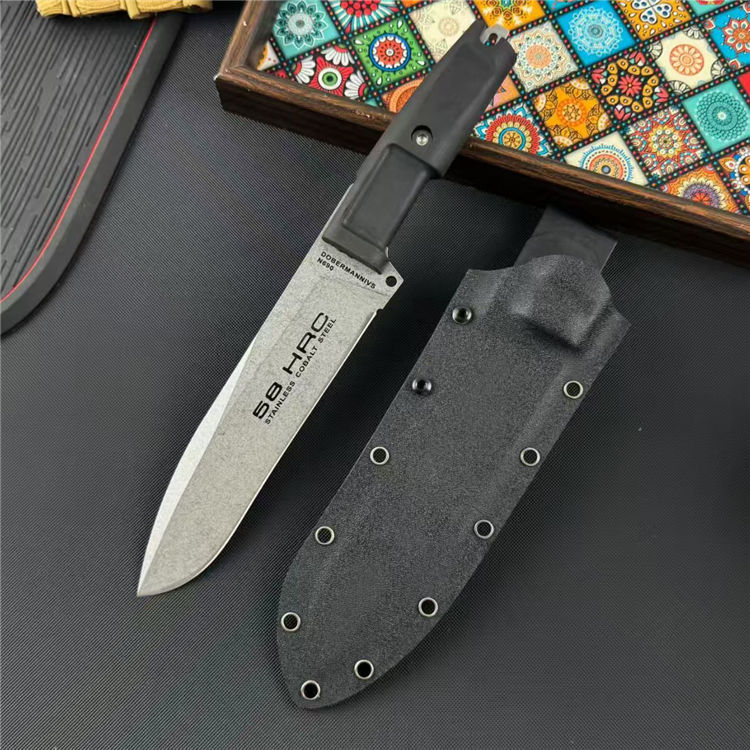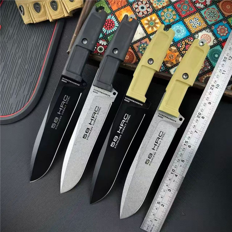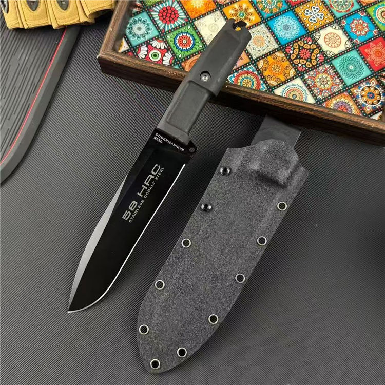 极端武力四代杜宾犬直刀 全长:31.2cm 刃长:16.6cm 刃厚:0.64cm 刃宽:4.15cm 刃材:N690 硬度:58HRC 柄材:Forprene 重量:349g(含鞘611g)