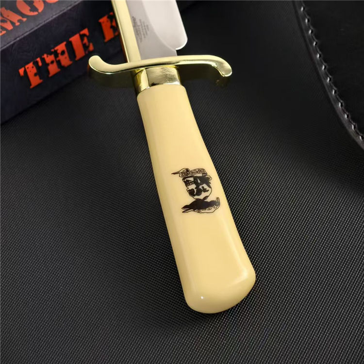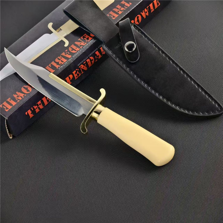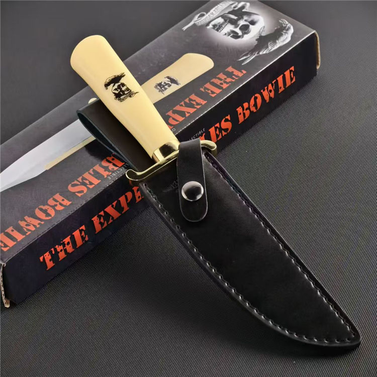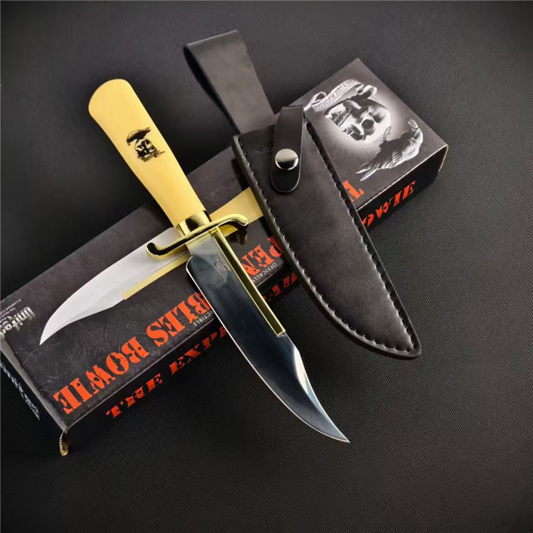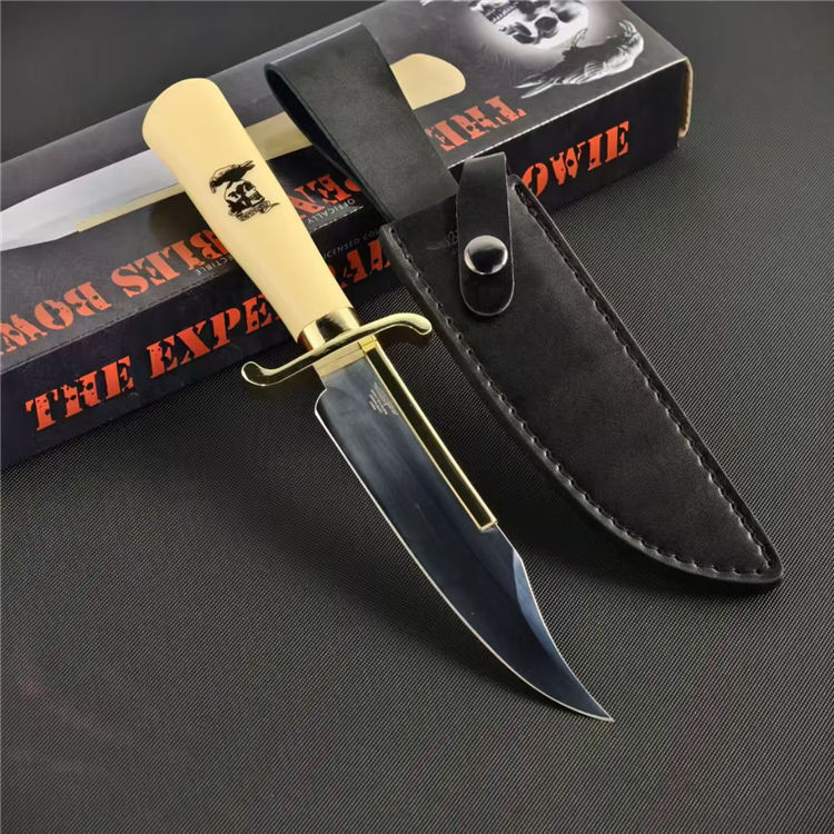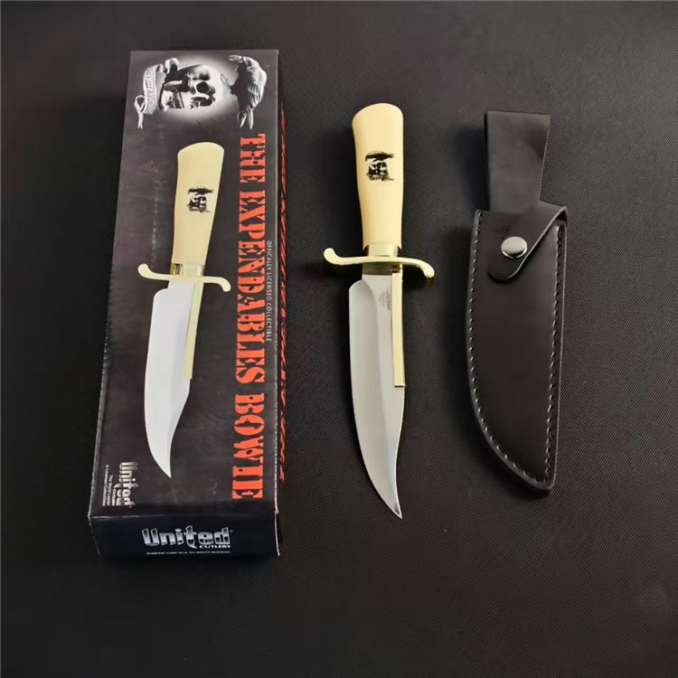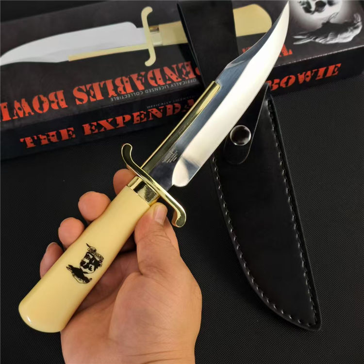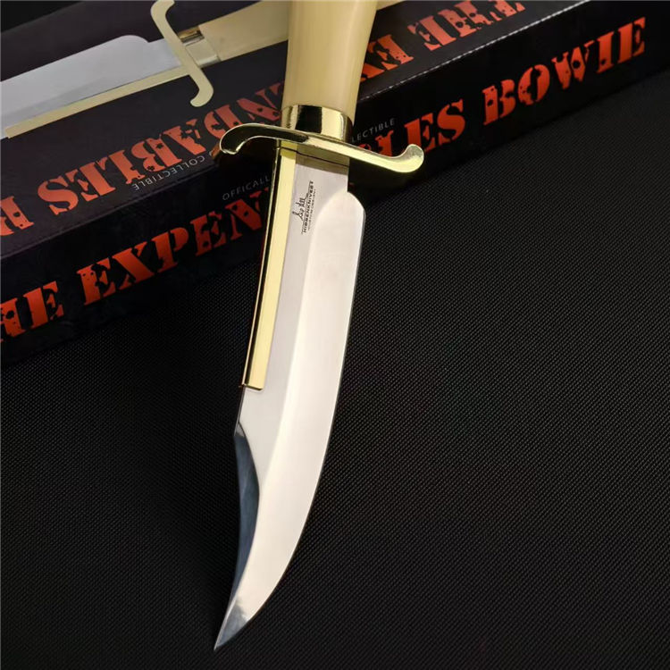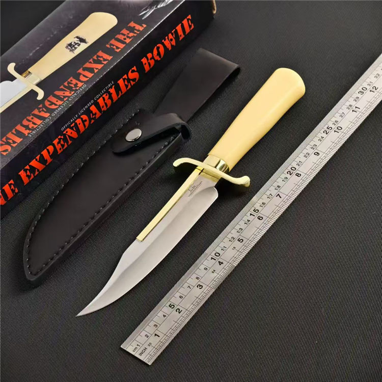 敢死队金背博伊直刀 全长:27.7cm 刃长:14.5cm 柄长:11.9cm 刃宽:3.2cm 钢材:440 刃厚:4mm 柄材:ABS 重量:195g(245g) 包装重量:364g