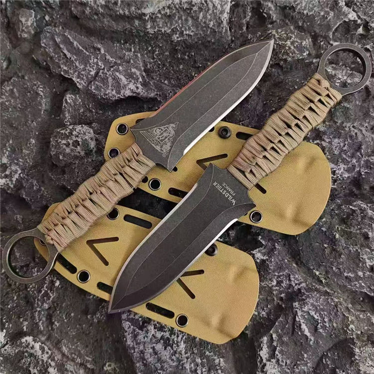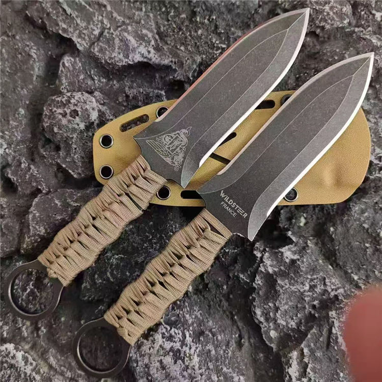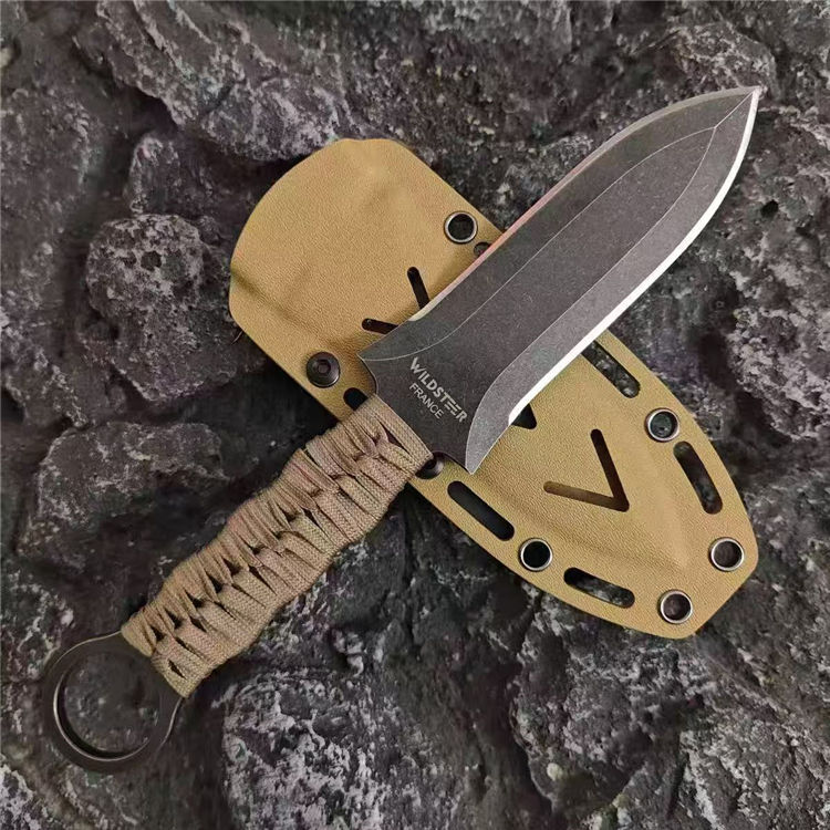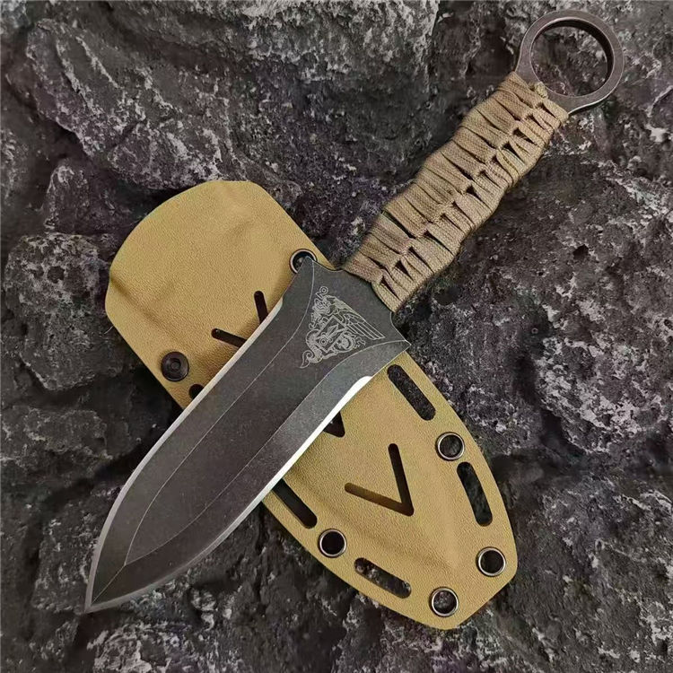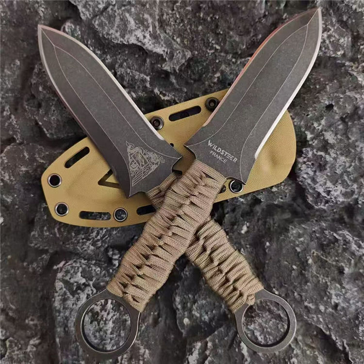雄鹰格斗直刀 全长:25cm 刃长:12.5cm 刃厚:5mm 刃材:DC53钢 硬度:60HRC 裸刀:206g 手柄:伞绳 刀鞘:K鞘 法国外籍军团第二伞兵团和Wildsteer野牛公司合作开发Altor雄鹰格斗匕首