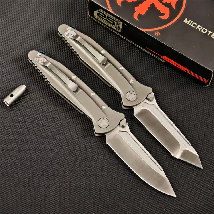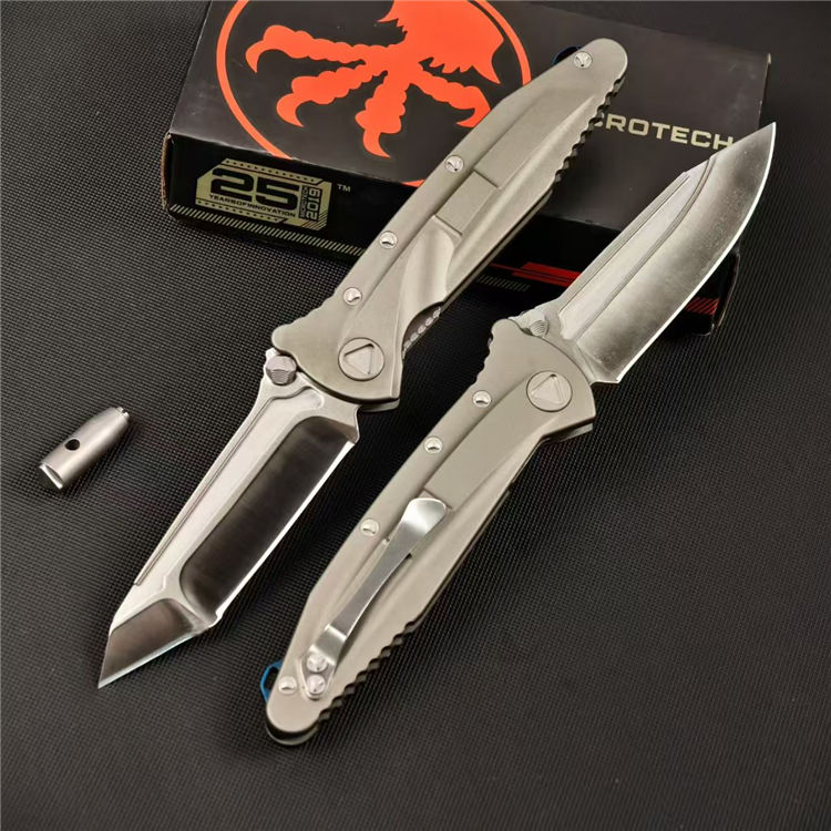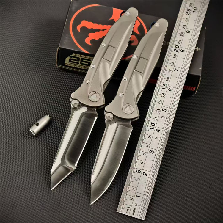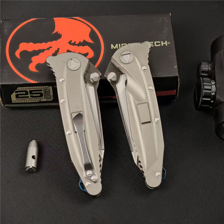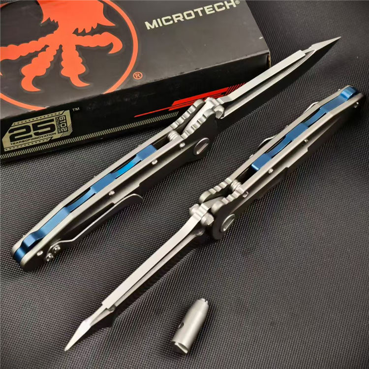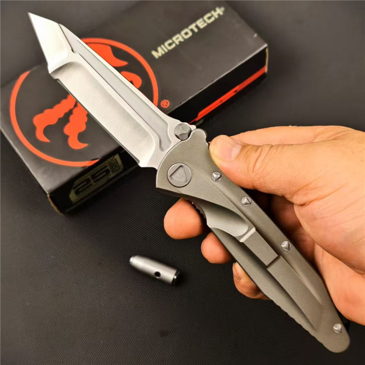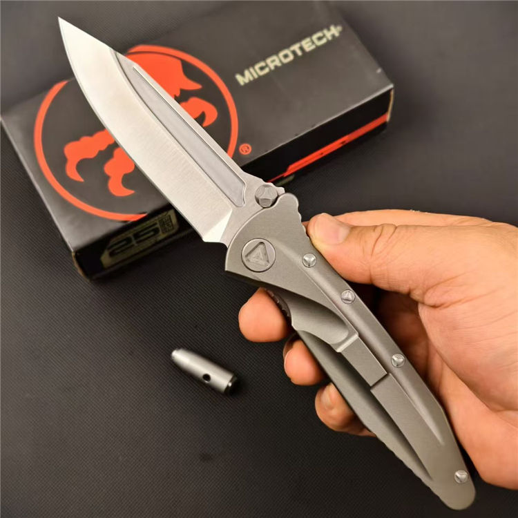 微技术三角洲战术折刀 全长:22.6cm 刃长:9.2cm 刃厚:4.5mm 刃宽:2.7cm 钢材:D2 柄材:铝合金 柄长:12.8cm 重量:184g 包装重量:236g