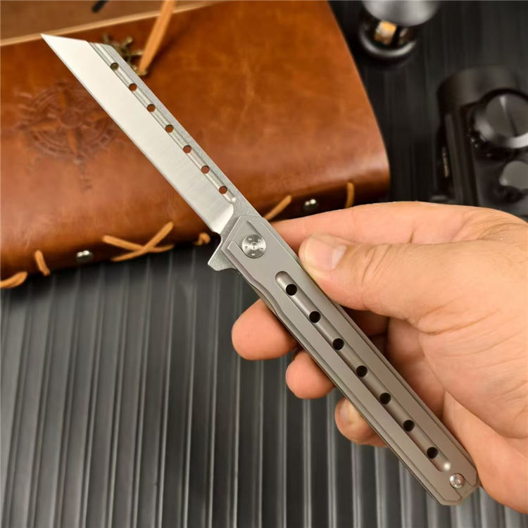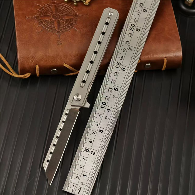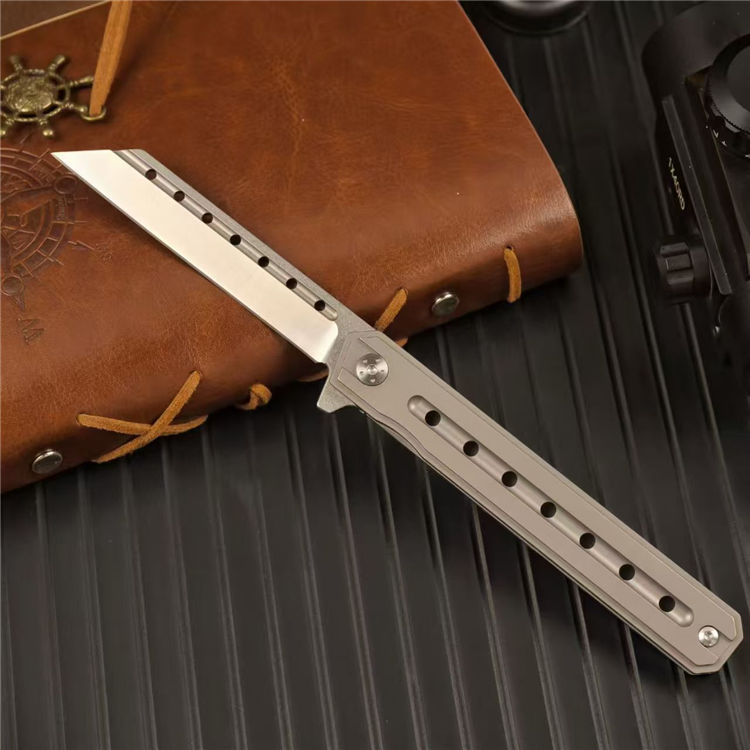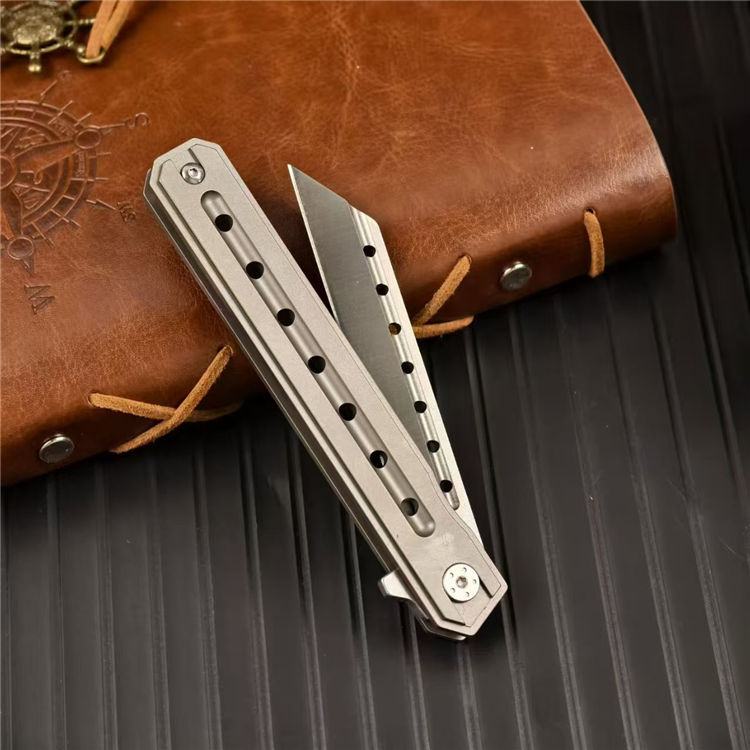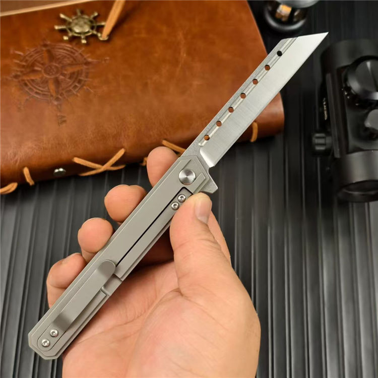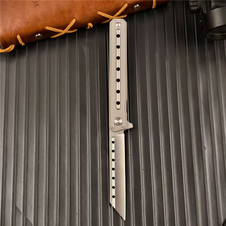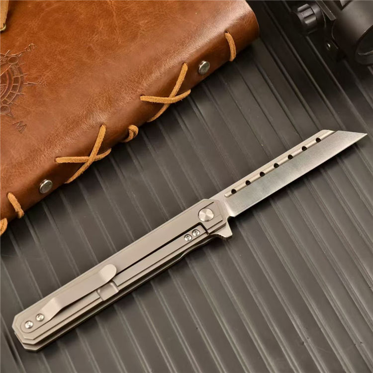 指挥官阿尔法米尤折刀 全长:21cm 刃长:9cm 刃厚:0.78cm 刃宽:2.41cm 柄长:12cm 柄厚:1.25cm 柄宽:1.81cm 刃材:D2 柄材:钛合金 重量:88g 包装重量:126g