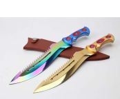 精仿极端武力小直刀(黑钛版) 全 长: 25cm 刃 长: 10cm 柄 长: 13cm 刃 厚: 5mm 刃 材: 5CR13MOV 硬 度: 57HRC 表 面: 黑钛 柄 材: 橡塑