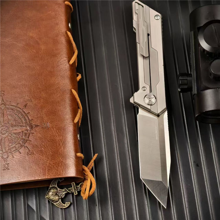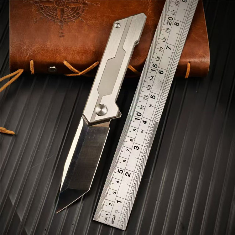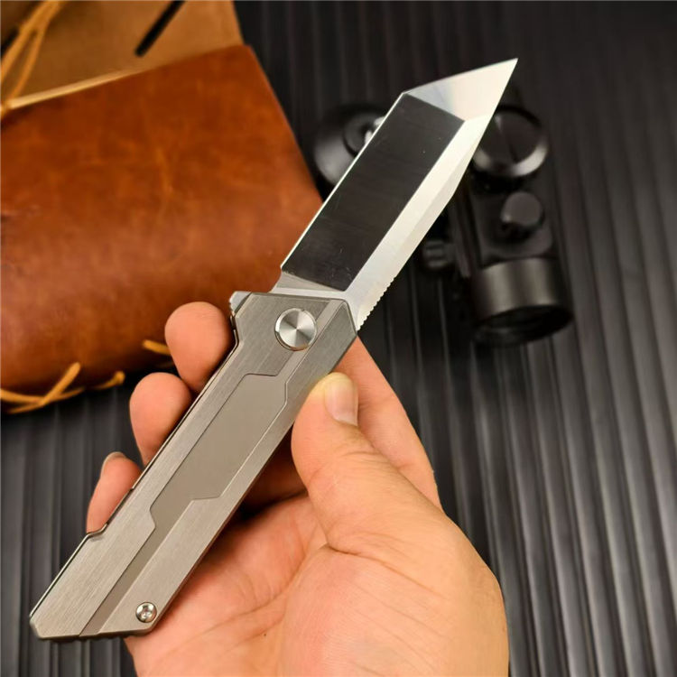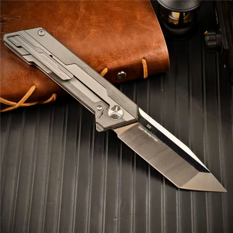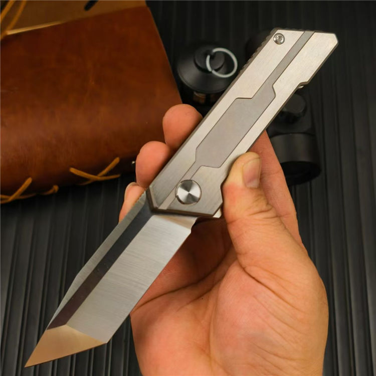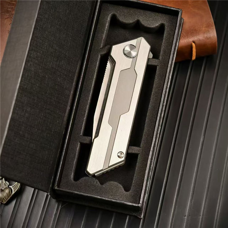 星核折刀 全长:19.7cm 刃长:8.6cm 刃厚:4mm 刃宽:2.7cm 柄长:11.4cm 刃材:D2 柄材:钛合金 重量:138g 包装重量:207g