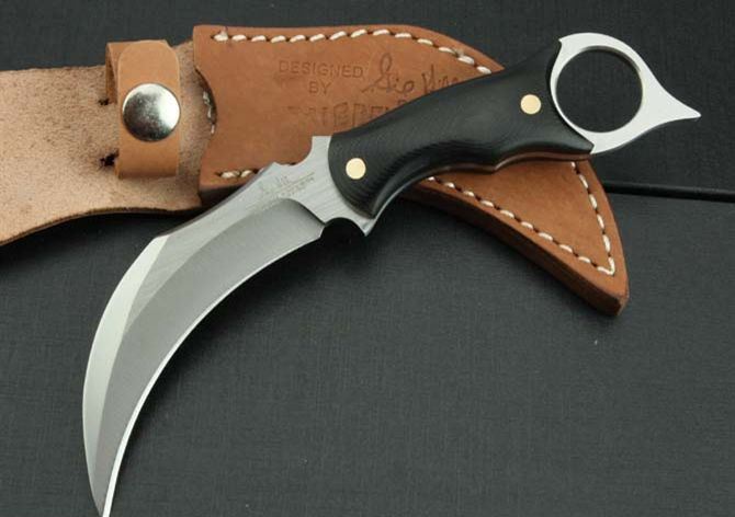 UC—120獠牙爪子(皮套) 全 长: 19cm 刃 长: 9.5cm 刃 宽: 2.5cm (最宽处) 刃 材: 5Cr13 硬 度: 57HRC 刃 厚: 0.5.1cm 柄 长: 10cm 表 面: 砂光 柄 材: 米克塔 重 量:225克(含鞘)