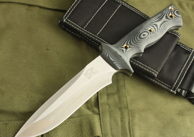 布兰登M2(外贸手签版) 全长:30cm 刃长:16cm 柄长:14cm 刃厚:6mm 刃宽: 3.5cm 刃材: 5Cr13 柄材: 米克塔 硬度: 56HRC 净重:395克 毛重:820克 表面处理:手工砂光 其他:配木盒