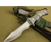 哥伦比亚-2990战术直刀 全 长:30.2cm 刃 长:16.2cm 柄 长:14cm 刃 宽:3.9cm(最宽处) 刃 厚:0.51cm 刃 材:7Cr13 硬 度:58HRC 刀 柄:进口亚麻 表 面:钢本色 刀 重:440克 总 重:800克(含包装物) 备 注:战术尼龙套
