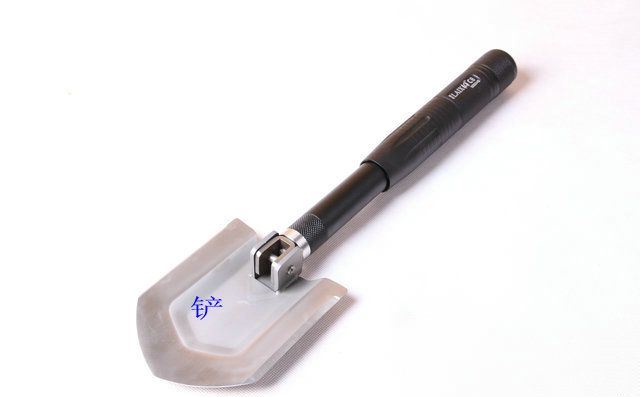 伸展长度:41.8cm 折叠长度:23.5cm 锹面尺寸:13.2*11.1cm 刀刃长度:9cm 厚度:2.1mm 重量:约750g (含包装物) 刃材:进口不锈钢 柄材:加厚航空铝材 包装:迷彩牛津布袋子,可挂腰上 特点:手柄拉缩型,方便折叠,当手柄拉尽时,再反时针扳转手柄,螺纹已紧.收回时,顺时针返回,再往回拉,完成手柄伸缩程序.