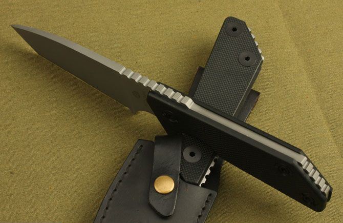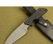 全长:249mm 柄长:128mm 刃厚:5.6mm 硬度:59-60HRC 刃材:9Cr13 表面:灰钛 柄材: 黑G10板 刀鞘: 牛皮 毛重:390g