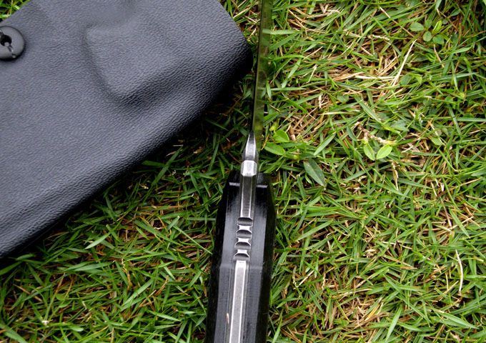 材质:9CR18MOV (锻打) 刃面打磨:高腰V磨 热 处 理:真空+深冷处理 主要性能:切,割,削为主,超凡耐磨性保持性 硬度:60±1HRC 表面处理:怀旧亚光处理 手柄:碳纤维表层G10手柄 尺寸: 全长: 220MM; 刃长: 105MM; 刃厚: 4.5MM. 配件:加厚K鞘、携带系统