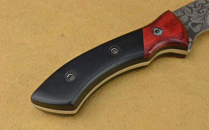 全 长:50cm 刃 长:37cm 刃 厚:6.5mm 刃 材:5C12Mov 柄 材:黑檀+红藤 硬 度:58Hrc 刀 套:牛皮