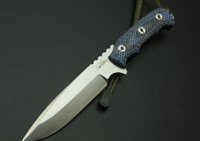 全长: 26.3cm 刃长: 12cm 刃宽:3cm 柄长: 12cm 刃厚: 0.5cm 重量: 380g 钢材: 9Cr18Mov钢 刃处理:一体数控线切割 硬度: 58HRC—60HRC 柄材: 米克塔(CNC电脑锣精密加工成型,精细手工打磨处理) 包装:纯手工缝制全黑军用牛津套 热处理: 采用真空热处理,再经过零下80度的深冷处理 表面处理: 砂光,,纯手工 正面激有二马LOGO