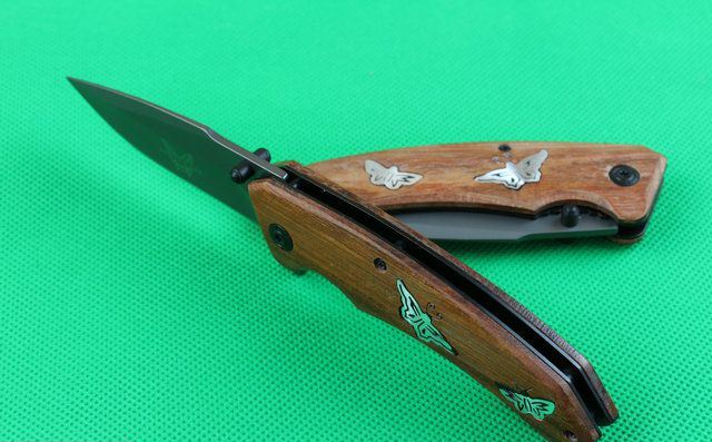 蝴蝶F68快开折刀 全 长: 19.5cm 刃 长: 8.2cm 刃 宽: 2.8cm(最宽处) 柄 长: 11.5cm 刃 材: 440 硬 度: 56HRC 表 面: 灰钛 刃 厚: 0.3cm 柄 材: 全钢伴木片 重 量: 170克(含包装) 包 装:原装纸盒 锁 闭: 侧锁 其 他:非常锋利