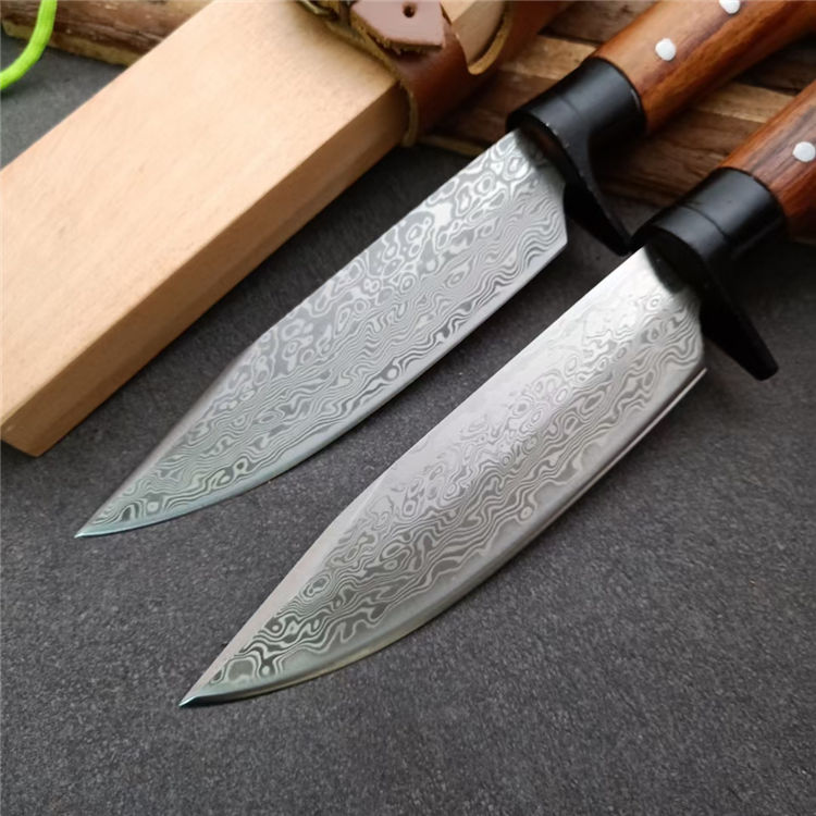 全长:25.5 刃长:13 刃厚:0.5 刃材: 花纹锻钢 刀刃硬度: 59HRC 重量:400克 刀柄:原木 刀鞘:原木+真皮+铜扣