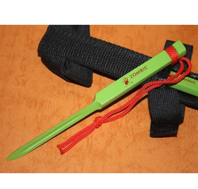 战俘箭(绿色) 总长:17.8CM材料 一体不锈钢 硬度:58HRC 全钢压铸一次成型 三棱小刃,三血槽,配有的刀鞘很方便绑在胳膊上和腿上,极具隐蔽性,全不锈钢制造!防身最佳选择。