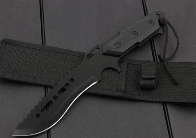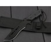 全 长:303mm 刃 长:180mm 柄 长:125mm 刃 宽:39mm 刃 厚:3.0mm 刃 材: 5cr15mov 重 量:299g(含包装) 硬 度:56 HRC 表 面:氧化黑 柄 材:pvc 锁 型:定锁 其 他:配纸盒 尼龙套