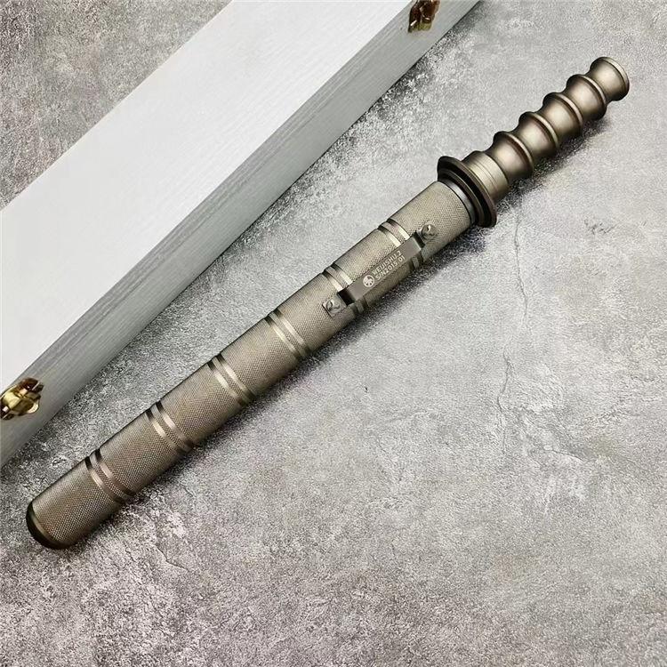 微技术Jagdkommando 特战钛蛇三棱(带圆托) 全 长:39cm 刃 长:26cm 柄 长:13cm 闭 合:41cm 刀 型:三棱刺 柄 材:铝合金 刀 鞘: 铝合金 净 重:700g 毛 重:1250g