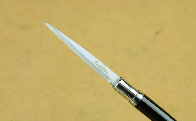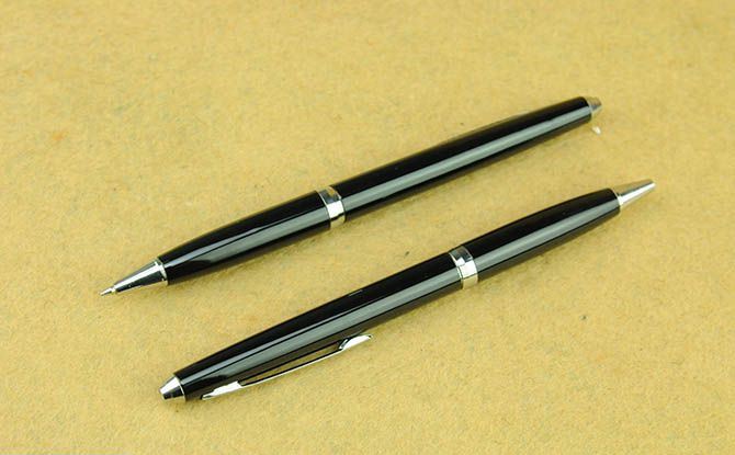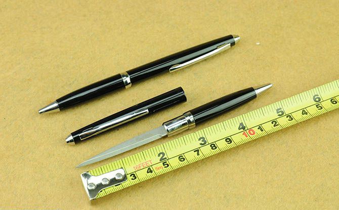 巧妙地将圆珠笔和小刀功能组合成一体,小巧便携,是理想的防卫工具,笔杆采用薄铜管。