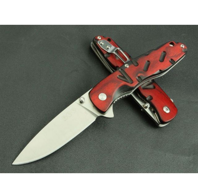 BEE-L04战术折刀 全长:19.5cm 刃长:8.2cm 柄长:11cm 刃厚:2.7mm 刃宽: 2.5cm 刃材: 8Cr13Mov 柄材: 红色彩木 硬度: 57HRC 净重:108克 毛重:118克 表面处理:手工砂光 锁型:侧锁