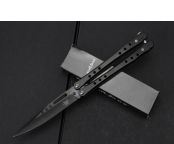 蝴蝶C55BK黑色甩刀 全长: 22.4CM(打开) 刃长: 10.2CM 刃厚: 0.29CM 刃材料:440C 硬度: 57-59 净重: 125克 总重量:180克 配彩盒