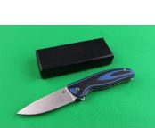 高端双色刀王折刀 全 长:22.0cm 刃 长:9.7cm 柄 长:12.8cm 刃 宽:3.2cm(最宽处) 刃 厚:4.7mm 刃 材:5CR15MOV 硬 度:57-59HRC 刀 柄:双色米卡塔。 表 面:平磨,直纹沙光 锁定方式:一体线锁 重 量:350克(含包装) 备 注:带背夹,刀身内置轴承。