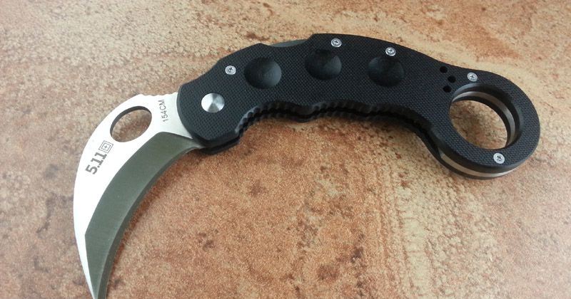 5.11装备系列,多为军警部门使用,来自Steve Tarani 史蒂夫设计,拇指圆孔打开方式,钢衬内置,柄内侧配置强力指槽, 握感一流,强力的lockback锁定,使刀刃能承受强力的冲击不变形,可靠性超强!爪刀传统的东南亚防卫武器
