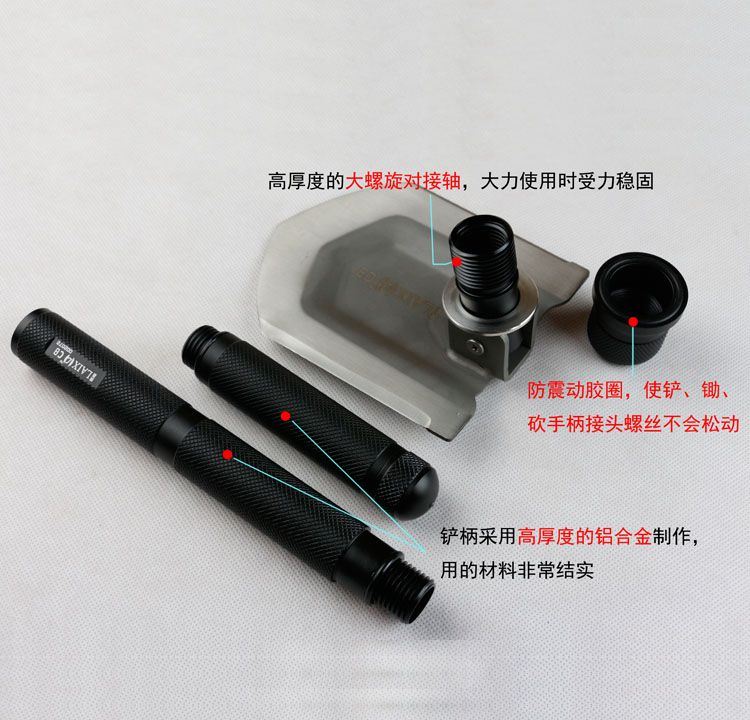 功能:有铲,锄 ,锯,刀,钨钢破窗器等功能,在生产工艺上采用上好淬火高碳钢,增加强度,抗磨损,抗腐蚀,耐高温等优势.