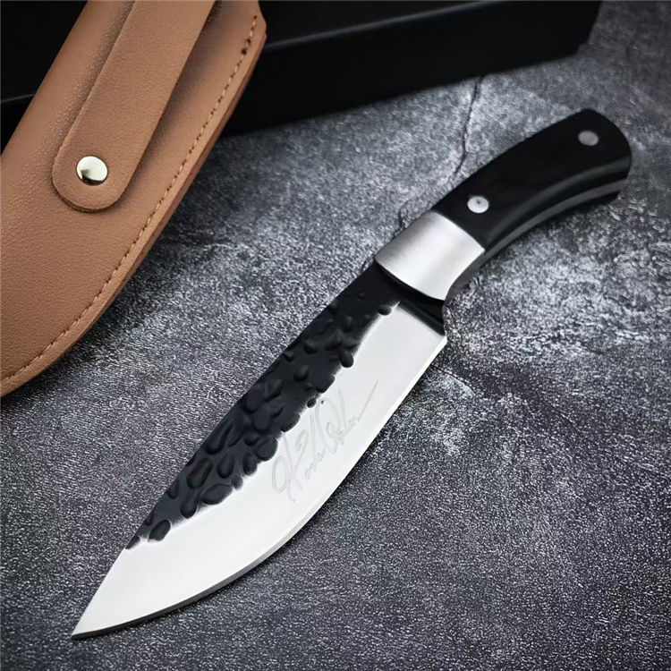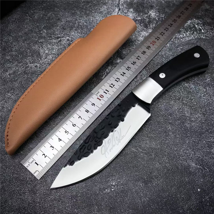 全 长:21.5cm 刃 长:11.5cm 柄 长:9.5cm 刃 宽:3.5cm 刃 厚:5.0mm 刃 材:3Cr13 重 量:330g(含包装) 硬 度:57HRC 表 面:砂光 柄 材:钢头+黑彩木 锁 型:定锁 其 他:配人造皮套和礼品盒