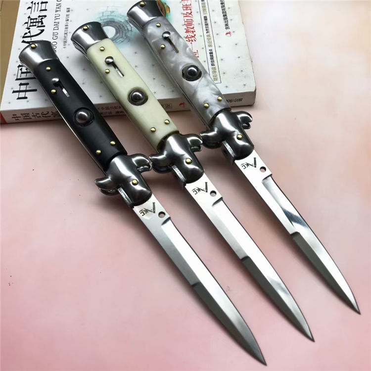 9寸AKC意大利跳刀蓝天(白钢头水波刃)